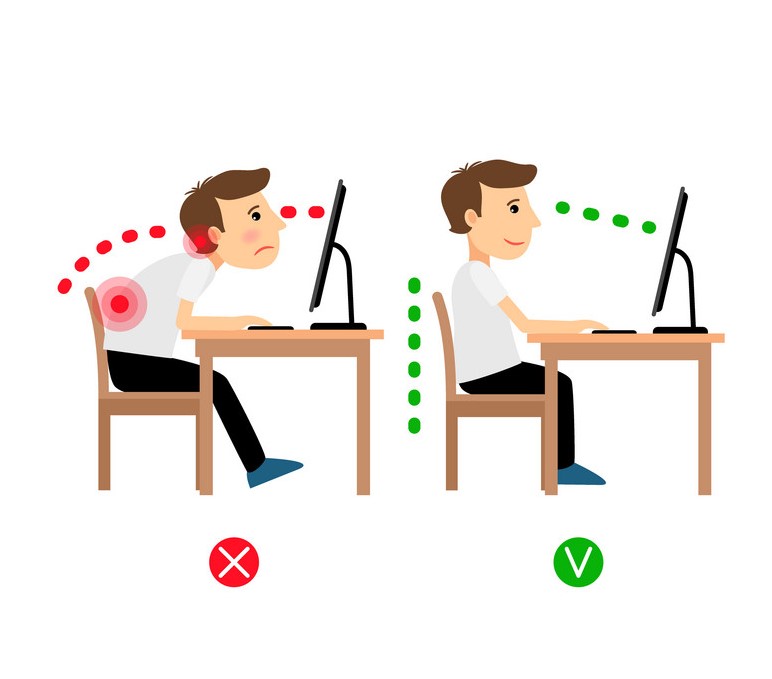 Kochani, każdy z nas spędza teraz dużo czasu siedząc przy biurku. Pamiętajcie, że dbanie o prawidłową postawę jest przy tym bardzo ważne. Dzięki temu sami będziecie czuli się lepiej. Jak należy więc siedzieć? Koniecznie dopilnujcie, aby mieć proste plecy, kolana ugięte pod kątem prostym, stopy oparte o podłogę.