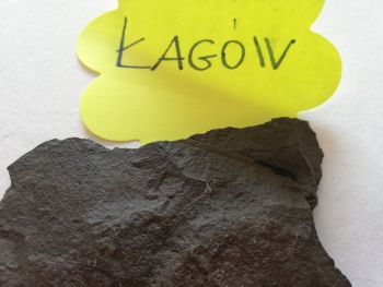 Mam też inne skamieniałości pochodzące z Wąwozu Prągowiec koło Łagowa. To graptolity. Żyły około (UWAGA!!!!) 400 milionów lat temu. Żyły, ponieważ było one zwierzętami morskimi. Mieszkały w tzw. Koloniach (grupach). A teraz, jako skamieliny wyglądają jak tasiemki lub źdźbła trawy, prawda? A nazwa graptolity pochodzi z greki i łączy w sobie dwa słowa: graptos - pisany + lithos – kamień. Czyli takie napisy na kamieniu.