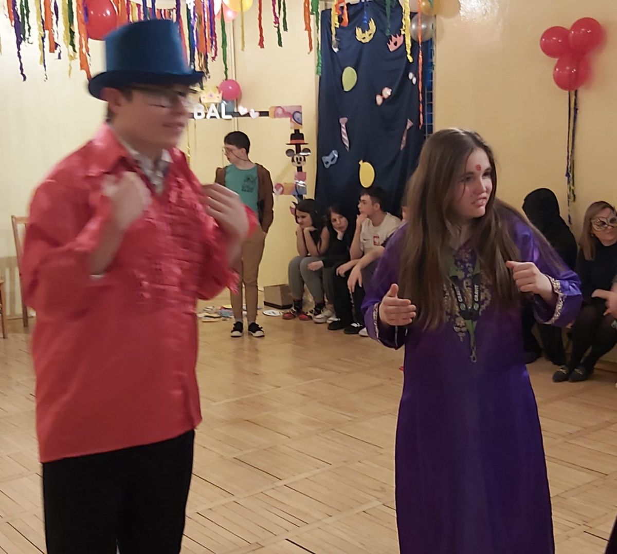 Uczniowie z radością brali udział w imprezie doskonale bawiąc się i rywalizując ze sobą. Wszystkim towarzyszył świetny humor, uśmiech i pozytywna energia. Nie zabrakło też słodkiego poczęstunku, który dodał wszystkim energii do dalszej zabawy. Zwieńczeniem zabawy były tańce w rytmach disco. Cały bal karnawałowy przebiegł w miłej, serdecznej atmosferze i dostarczył niezapomnianych wrażeń – co było głównym celem tego balu.