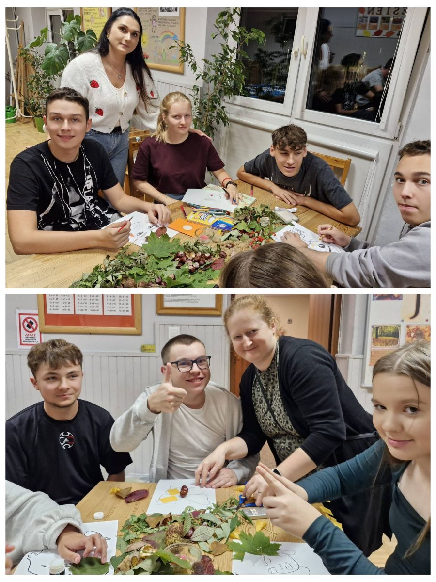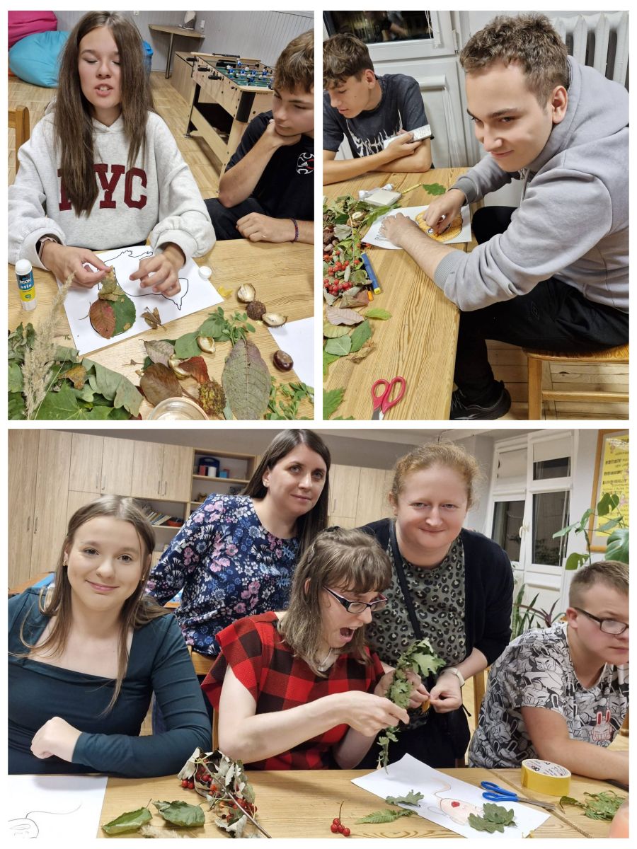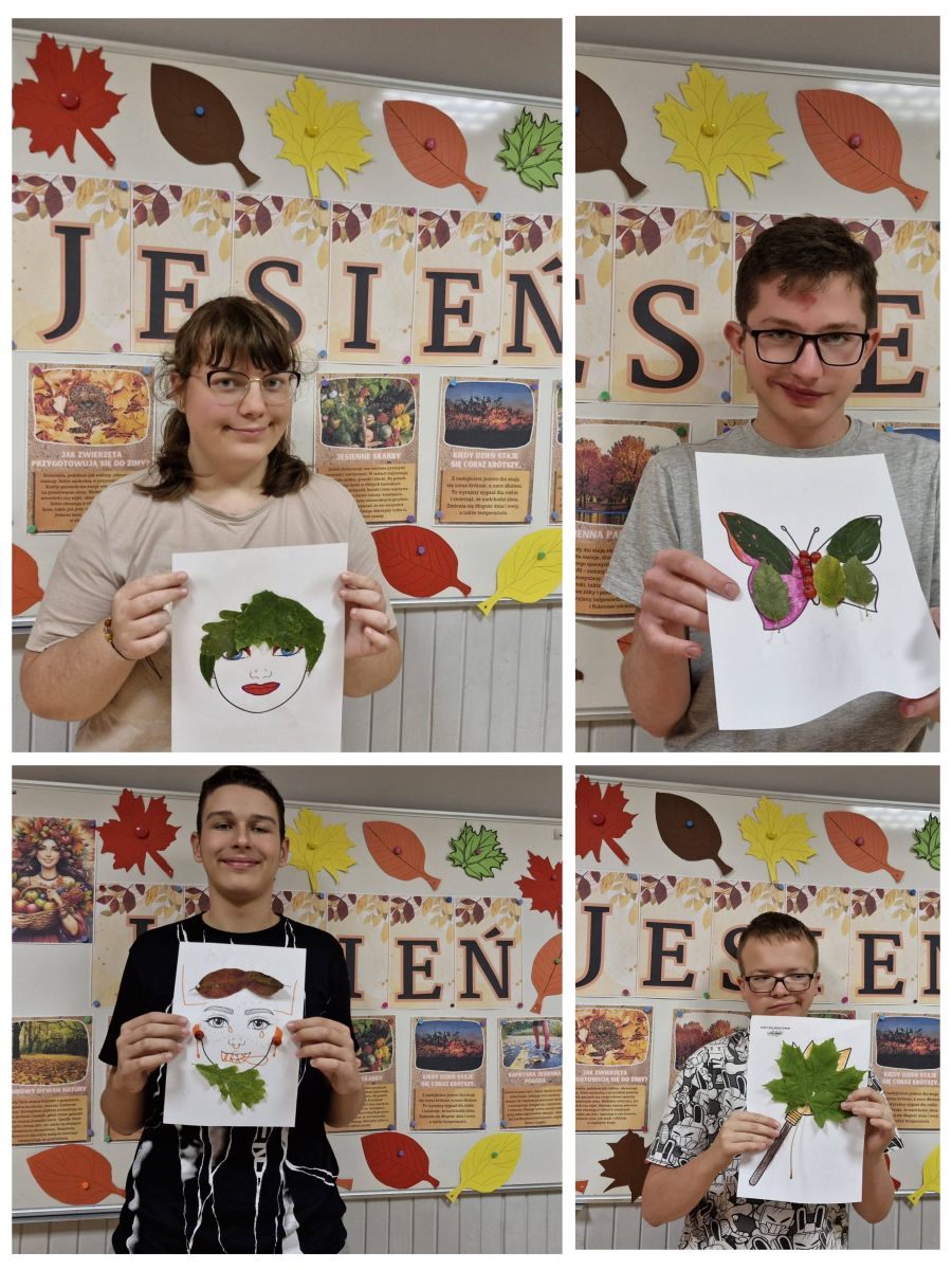W dniu 23.09. br. na zajęciach popołudniowych zachęcaliśmy naszych wychowanków do wykorzystania darów jesieni w pracach plastycznych pod hasłem „Jesienne inspiracje plastyczne”. Uczniowie przy odrobinie wyobraźni, starali się wyczarować prawdziwe cuda m.in. z kasztanów, żołędzi, szyszek, liści, czerwonej jarzębiny oraz gotowych szablonów np. Pani Jesień, różnych zwierząt, twarzy itp.