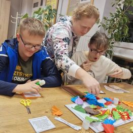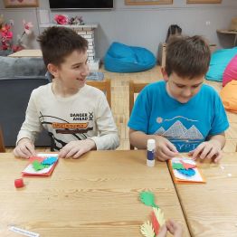 We wtorek w świetlicy wychowankowie grup wychowawczych brali udział w zajęciach plastycznych, na których wykonywali laurki. To świetny sposób na rozwijanie kreatywności i umiejętności manualnych, a także na wyrażenie wdzięczności nauczycielom i wychowawcom poprzez własnoręcznie wykonane prace. Wychowankowie tworzyli prace w różnych technikach, takich jak wycinanie, kolorowanie, a także wykorzystywanie nietypowych materiałów.