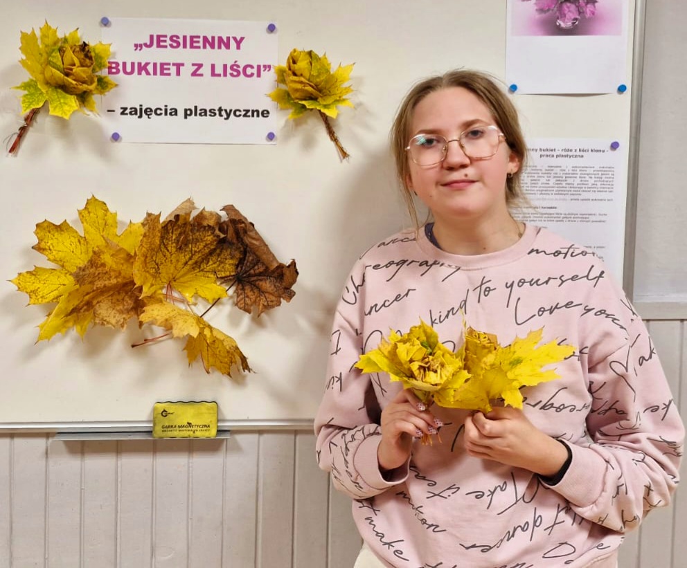 Zachęcani do kreatywności i cierpliwości wychowankowie stworzylinaturalną, sezonową dekorację,  która upiększy przestrzeń i pozwoli na kreatywne wyrażenie siebie. Taki bukiet to prosty i ekologiczny sposób na wykorzystanie barwnej jesieni, który może posłużyć jako ozdoba domu, świetlicy i też pokojach sypialnych. Praca taka może zachęcić wychowanków do dalszych prac plastycznych, które pozwolą rozwijać ich kreatywność i zdolności manualne.