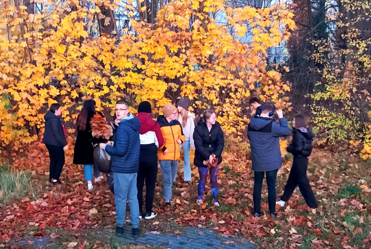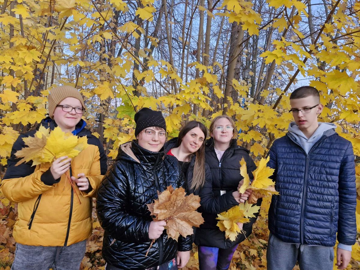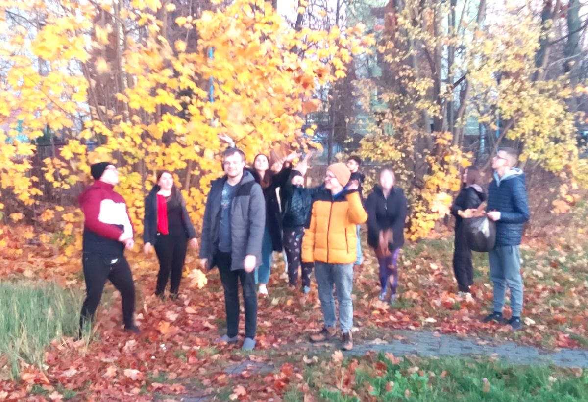Liście zostały później wykorzystane podczas zajęć plastycznych. Zbieranie jesiennych liści sprzyjało rozwijaniu umiejętności sensorycznych i ruchowych. Dzieci I młodzież doświadczyły radości z aktywności na świeżym powietrzu, rozwinęły spostrzegawczość oraz umiejętność współpracy.