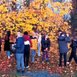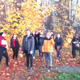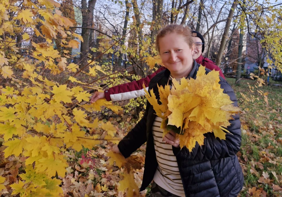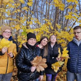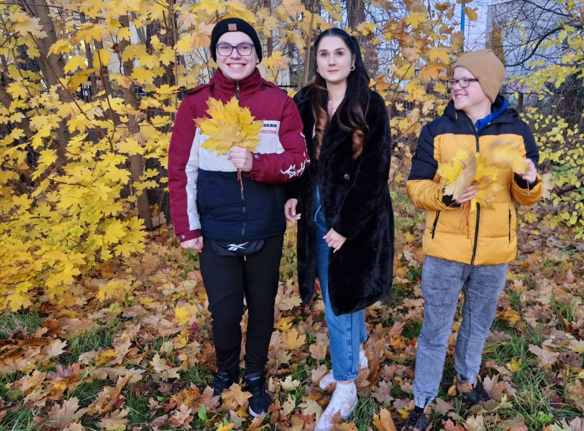 W piękne, słoneczne popołudnie grupy wychowawcze wraz ze swoimi wychowawcami udały się na spacer w pobliżu ośrodka. Zbierano kolorowe, jesienne liście na bukiety. Wychowankiwie rozpoznawali różne gatunki drzew, nazywali kolory i kształty liści. Podczas spaceru uczestnicy zwracali uwagę na zmiany zachodzące w otaczającej ich przyrodzie jesienią – spadające liście, chłodniejsze powietrze, zapach wilgotnej ziemi.