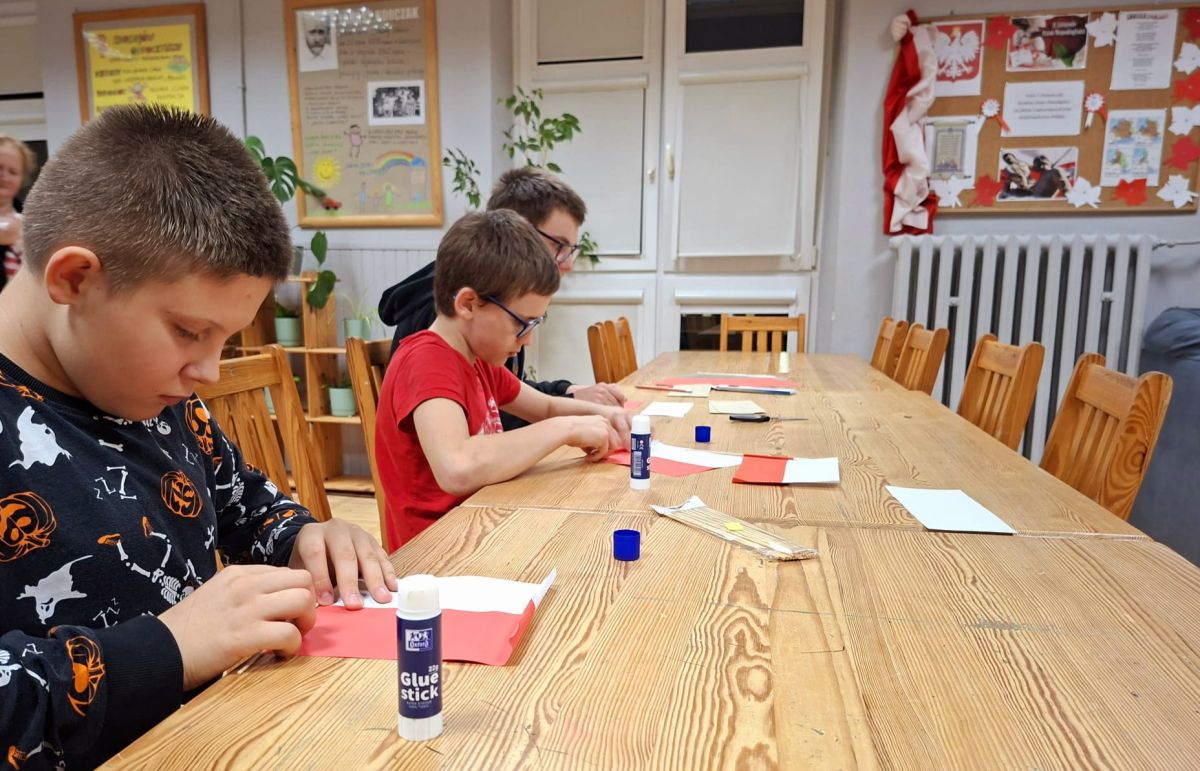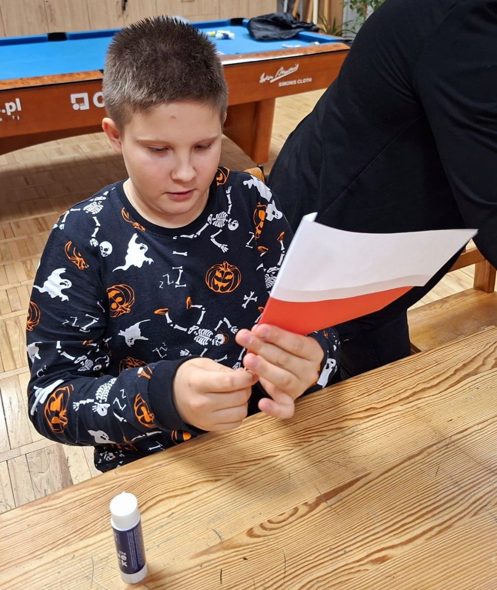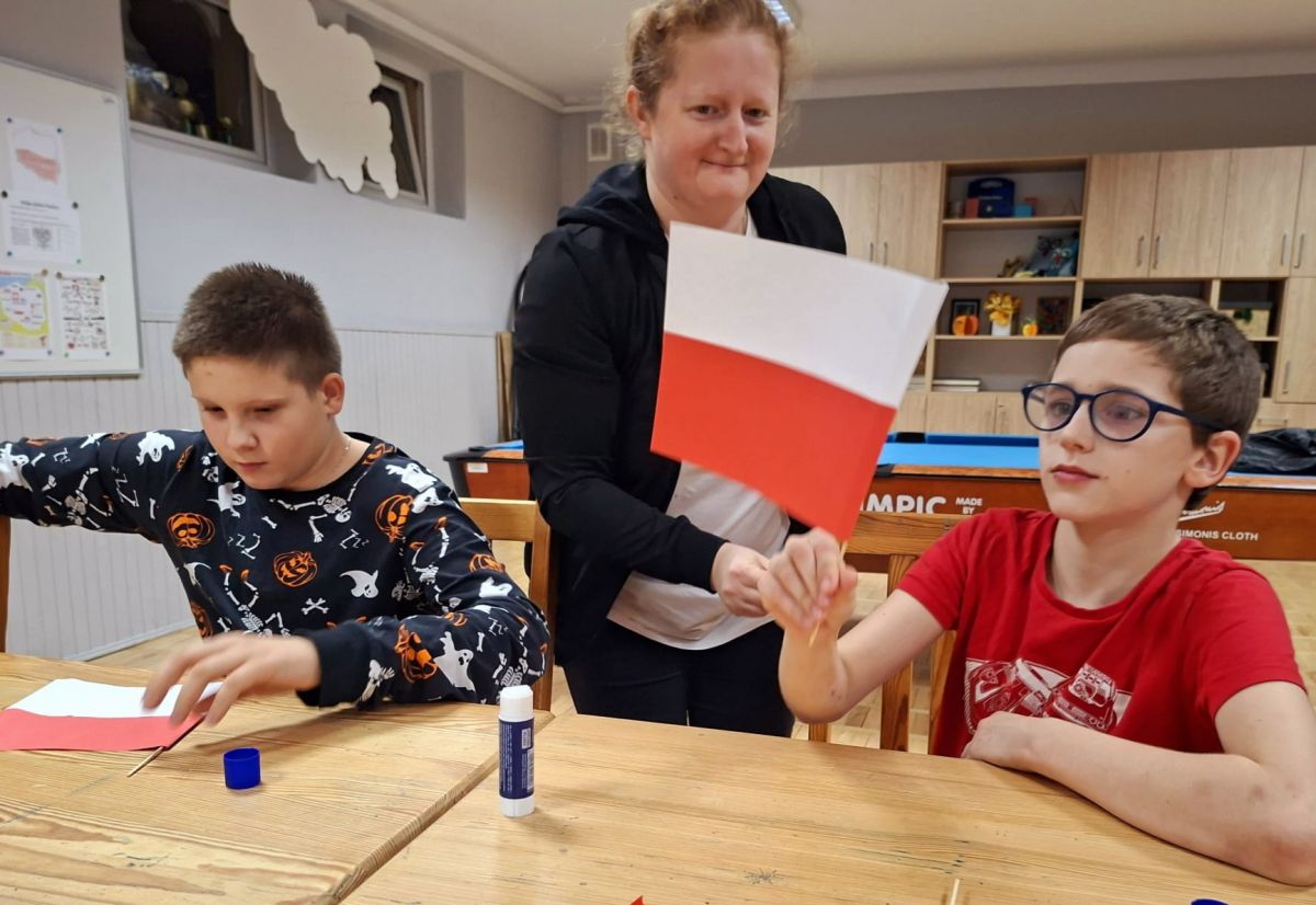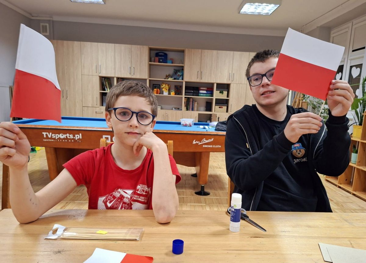 W związku ze zbliżającym się Świętem Odzyskania Niepodległości przez Polskę, zintegrowani wychowankowie różnych grup wychowawczych samodzielnie wykonali flagę naszej Ojczyzny, aby razem z nią uczestniczyć w nadchodzącej uroczystości państwowej.Głównym celem zajęć było kształtowanie miłości i przywiązania do kraju ojczystego, jego kultury i tradycji oraz poznanie symboli narodowych naszego kraju, oddanie czci naszym barwom ojczystym. Wzbudzanie u wychowanków poczucia tożsamości narodowej i szacunku do symboli, kształtowania pozytywnych postaw i uczuć patriotycznych.