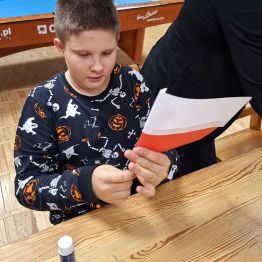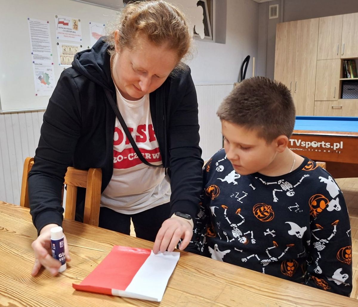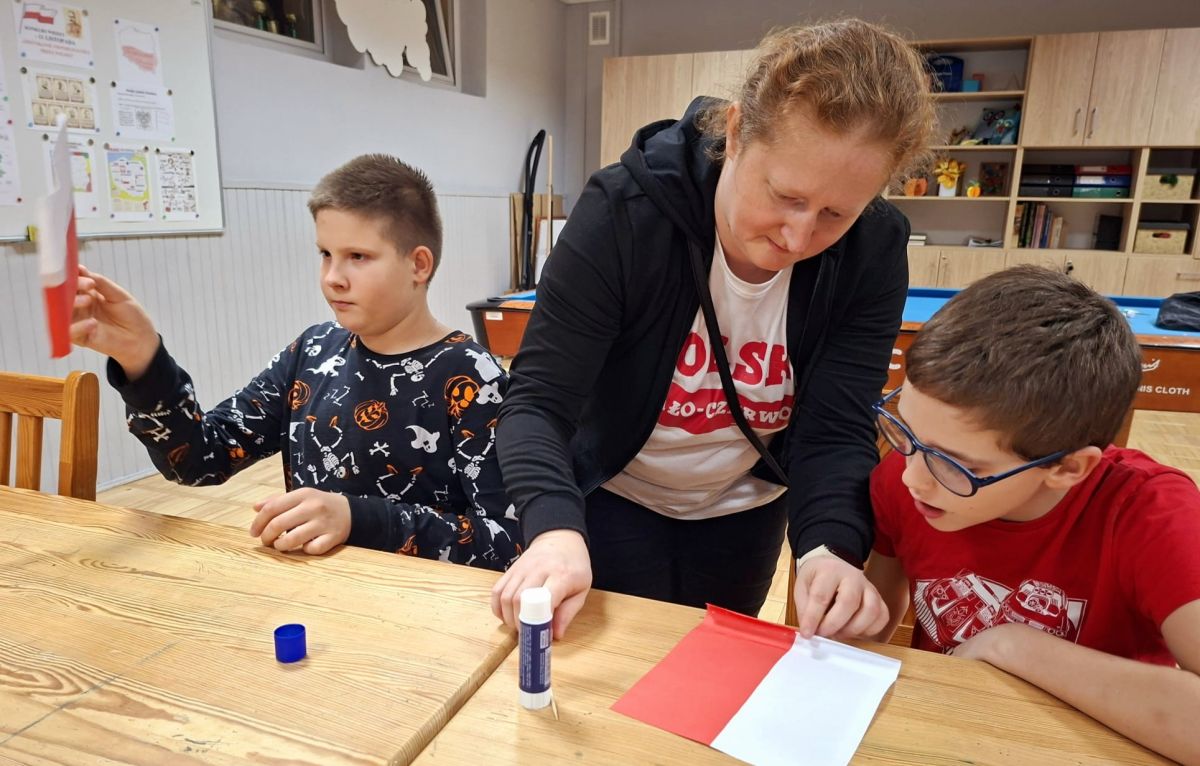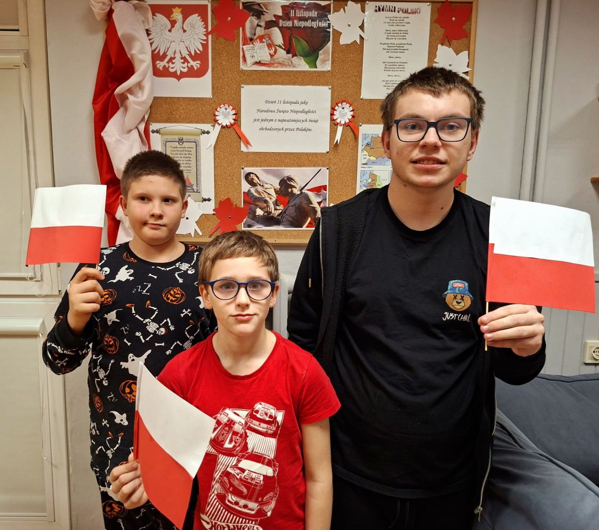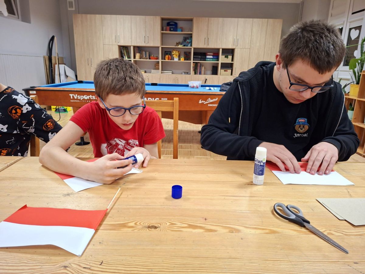 W związku ze zbliżającym się Świętem Odzyskania Niepodległości przez Polskę, zintegrowani wychowankowie różnych grup wychowawczych samodzielnie wykonali flagę naszej Ojczyzny, aby razem z nią uczestniczyć w nadchodzącej uroczystości państwowej.Głównym celem zajęć było kształtowanie miłości i przywiązania do kraju ojczystego, jego kultury i tradycji oraz poznanie symboli narodowych naszego kraju, oddanie czci naszym barwom ojczystym. Wzbudzanie u wychowanków poczucia tożsamości narodowej i szacunku do symboli, kształtowania pozytywnych postaw i uczuć patriotycznych.
