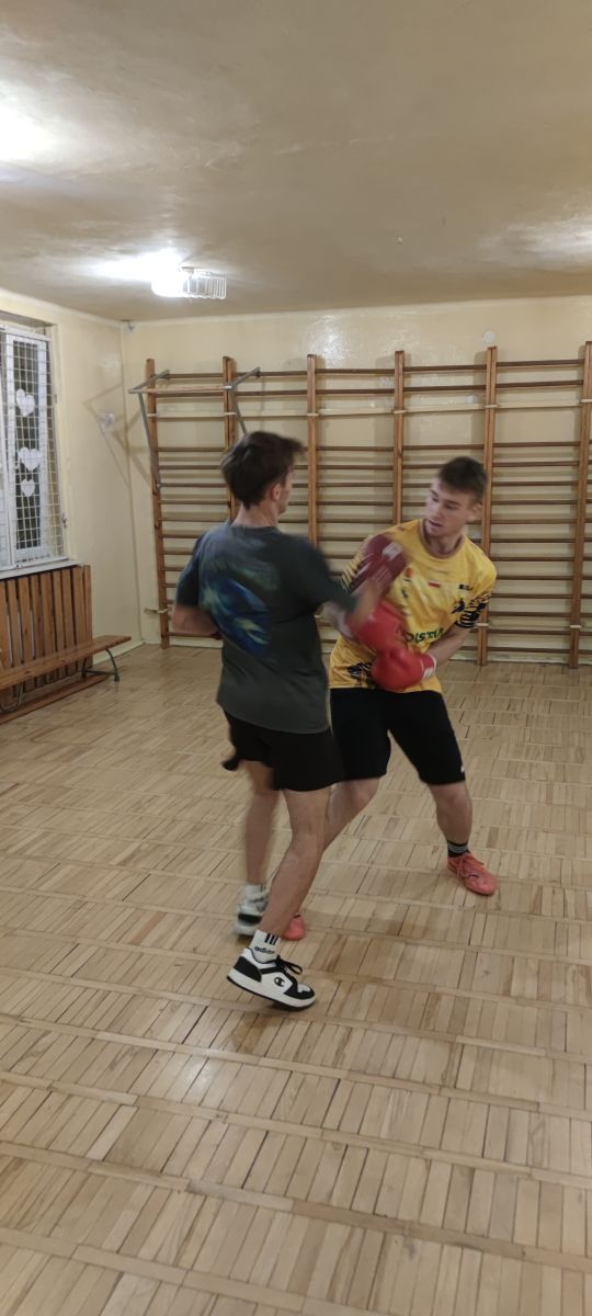 Nasi wychowankowie uczą się krok po kroku technik bokserskich. Na kolejnych treningach doskonalili technikę zadawania ciosów. Najważniejsze podczas zadawania ciosu, jest wyprowadzanie go z gardy. Jeszcze przed wyprowadzeniem ciosu nasze ręce powinny znajdować się przy twarzy. Gdy zaczynamy wyprowadzać cios, nasz bark powinien osłaniać naszą szczękę, tak aby nie narazić się na atak przeciwnika podczas zadania ciosu przez nas.Ważne jest również ułożenie naszych łokci, powinny się one znajdować przy tułowiu przez większą część walki. Dzięki temu będą one osłaniać nasz brzuch oraz wątrobę, która jest bardzo czułym punktem. Wiele walk zostało zakończonych właśnie poprzez celny cios na wątrobę.Również bardzo ważną rzeczą jest skręt tułowia podczas wyprowadzania ciosu. Jest on w 90% odpowiedzialny za siłę ciosu, niezależnie od tego czy są to ciosy sierpowe, ciosy proste czy haki. Możemy sami to przetestować, wystarczy zadać 2 ciosy na worku jeden bez skrętu tułowia, a drugi cios wykonamy ze skrętem. Powinniśmy od razu poczuć różnicę w sile naszego ciosu.