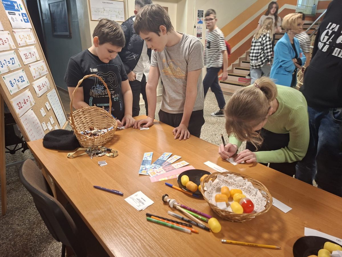 Z okazji XV Światowego Dnia Tabliczki Mnożenia w naszej szkole odbyły się zajęcia mające na celu utrwalenie umiejętności mnożenia wśród uczniów oraz pokazanie, że matematyka może być świetną zabawą. Na początku każde wychowanek otrzymało zestaw pięciu przykładów z tabliczki mnożenia, które musiało samodzielnie rozwiązać. Następnie specjalnie powołana komisja egzaminacyjna sprawdzała poprawność wykonanych zadań. Dzieci, które rozwiązały wszystkie przykłady bezbłędnie, otrzymywali słodką nagrodę. Wychowawcy także mieli możliwość sprawdzenia swoich umiejętności.