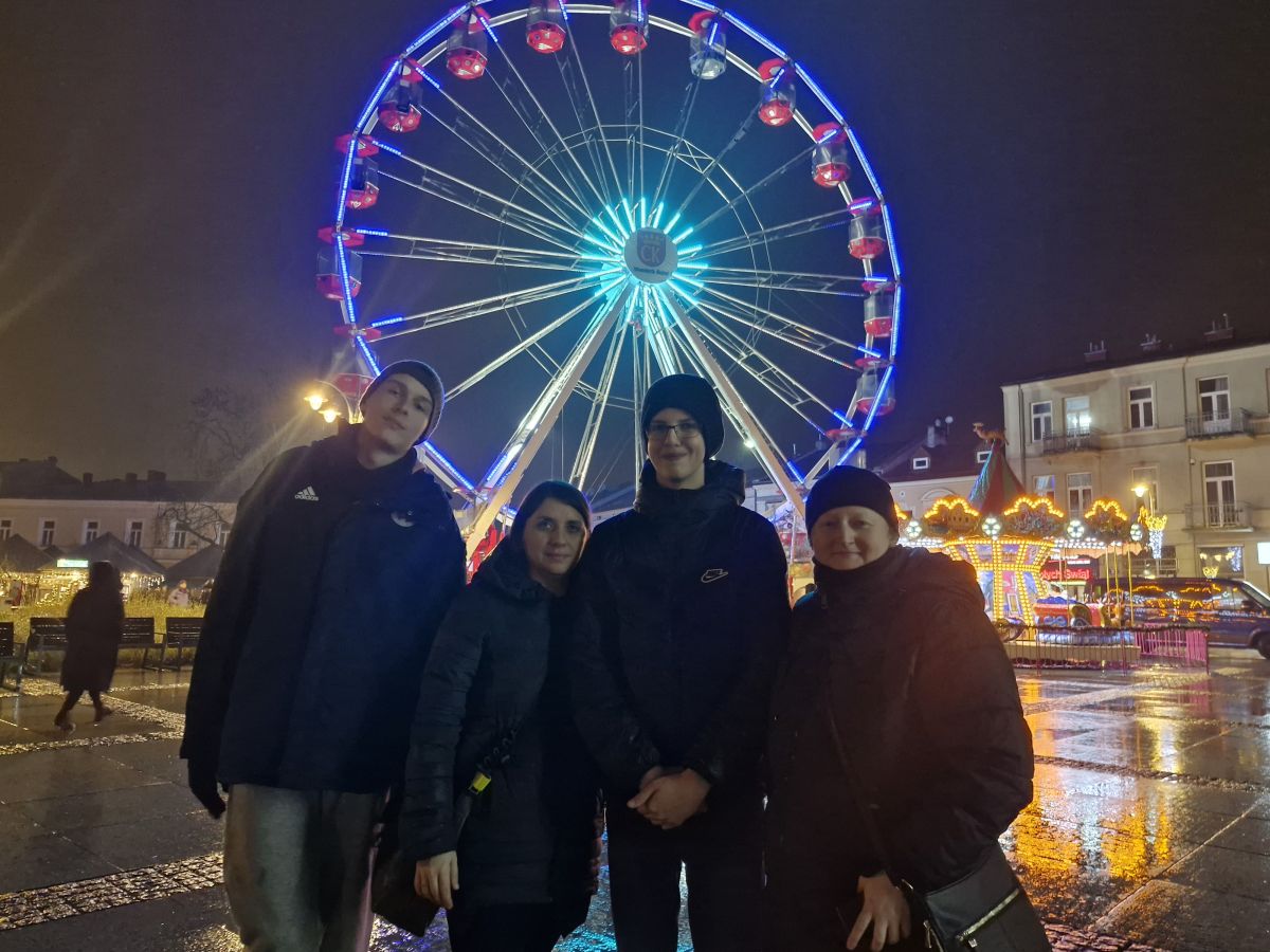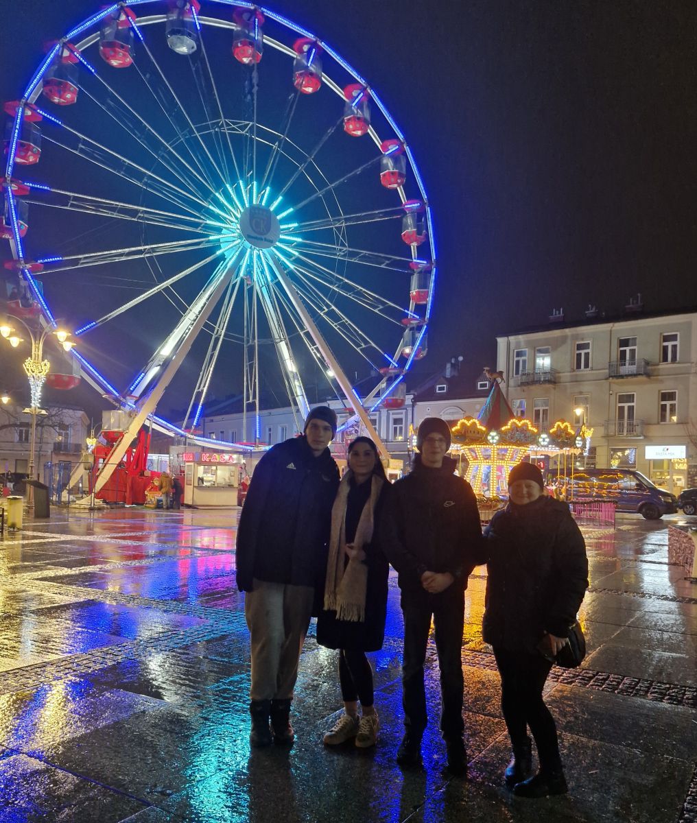 Po dotarciu na rynek m艂odzie偶 z zainteresowaniem ogl膮da艂a choink臋, jarmarkowe stragany i bogato zdobione 艣wi膮teczne instalacje. Niema艂膮 atrakcj膮 okaza艂a si臋 przeja偶d偶ka Diabelskim M艂ynem, z kt贸rego rozci膮ga艂 si臋 pi臋kny widok na zimowe, 艣wi膮tecznie przystrojone Kielce.