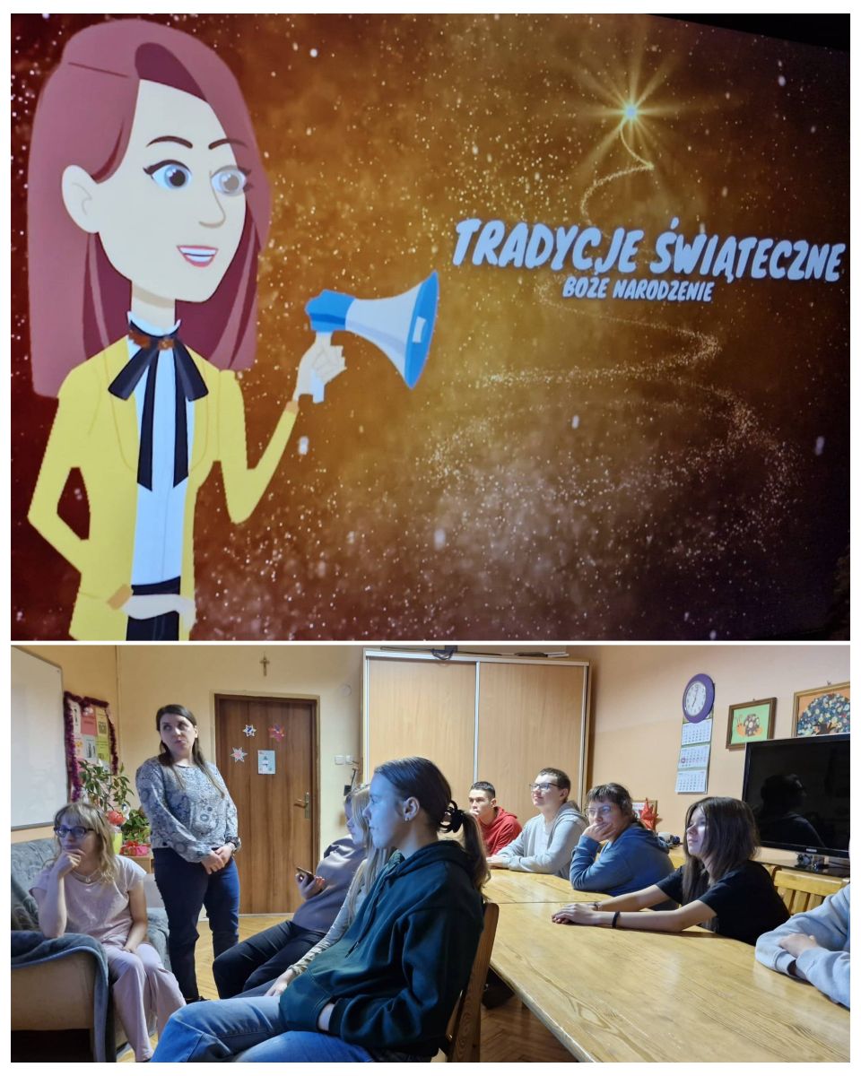 W dniu 15 grudnia 2025 roku zostały zrealizowane zajęcia edukacyjne pt.: „Święta Bożego Narodzenia w Polsce i na świecie – tradycje i zwyczaje” z wykorzystaniem platformy internetowej WordWall. Celem zajęć było poszerzenie wiedzy wychowanków nt. bożonarodzeniowych tradycji i zwyczajów kultywowanych w Polsce oraz w wybranych krajach świata, a także rozwijanie umiejętności pracy z nowoczesnymi narzędziami edukacyjnymi.