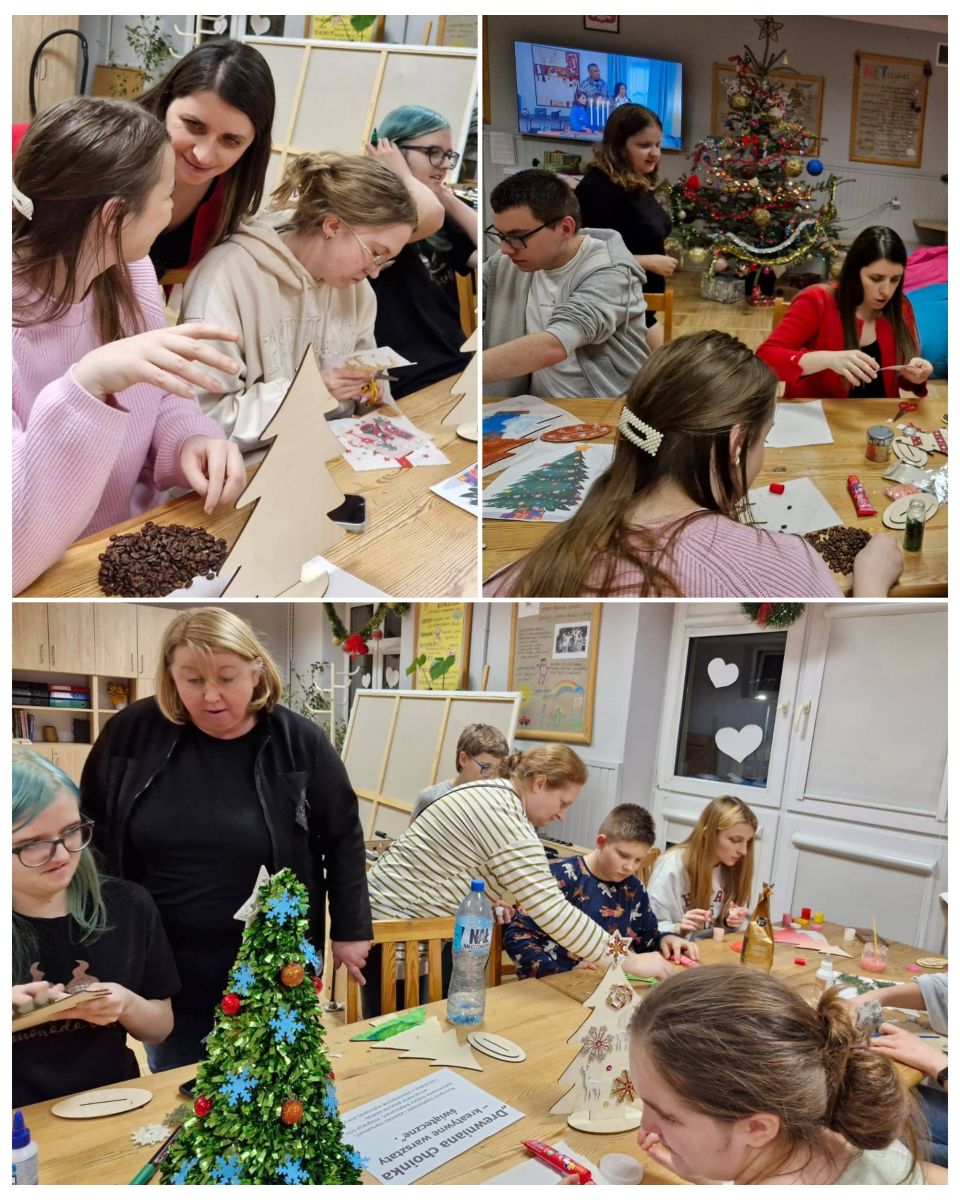 Zajęcia przebiegły w miłej, przedświątecznej atmosferze, pełnej kreatywności i radości. Wykonane choinki stały się piękną ozdobą pokoi mieszkalnych wychowanków oraz wspaniałą pamiątką z zajęć świątecznych. Warsztaty dostarczyły uczestnikom wiele radości i satysfakcji z własnoręcznie wykonanej pracy. Na okres świąteczny dzieci zabiorą swoje własnoręcznie wykonane choinki do domu, gdzie posłużą jako świąteczne prezenty dla bliskich.