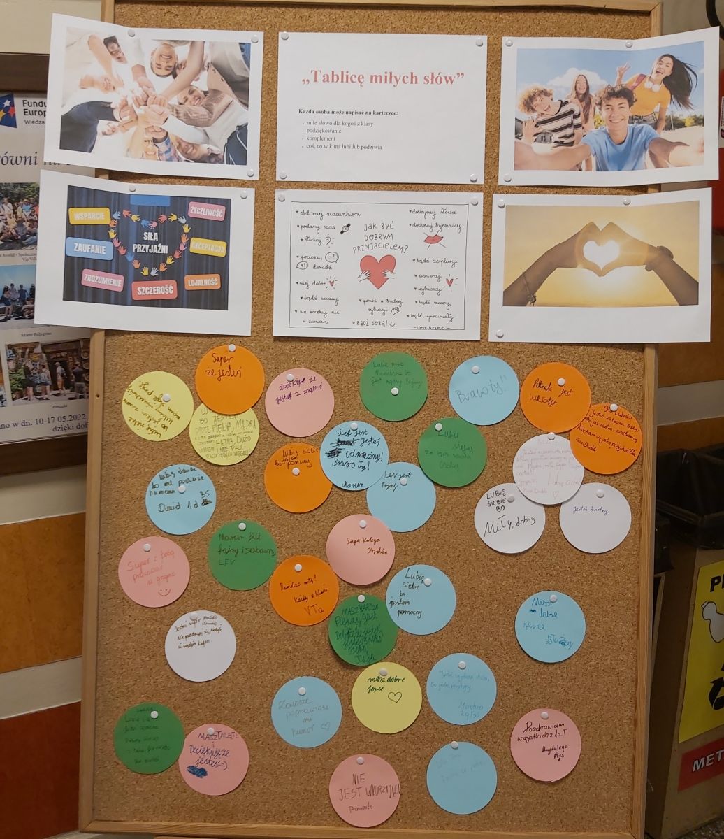 Jedną z inicjatyw tego dnia była Tablica Miłych Słów. Wychowankowie zapisywali na kolorowych karteczkach miłe wiadomości, komplementy oraz podziękowania skierowane do koleżanek, kolegów i wychowawców.