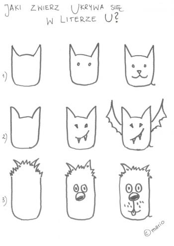 Dzień dobry Grupo IV, w ostatnich dniach dałem Wam pracochłonne zadania. Więc dzisiaj prawie przedświąteczny relaks. I fajna zabawa. Czy wiecie jakie zwierzęta kryją się w literze "U". Zobaczcie. Narysujcie zwierzaki zgodnie ze wskazówkami. A może samodzielnie odkryjecie kolejnych literkowych lokatorów. Jestem bardzo ciekawy Waszych pomysłów. Życzę Wam radosnych i kolorowych świątecznych dni. M. Gierczak