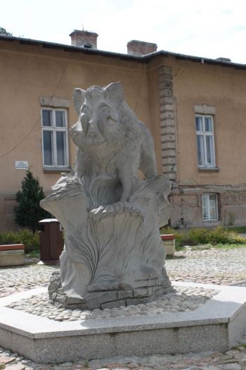 Chciałabym przedstawić Wam najważniejsze informacje informacji o powstaniu Kielc. (J.K) – Gr.VI Kielce – Pomnik dzika – Tablice rozmieszczone wokół pomnika opisujące legendę powstania Kielc (fot. własna)