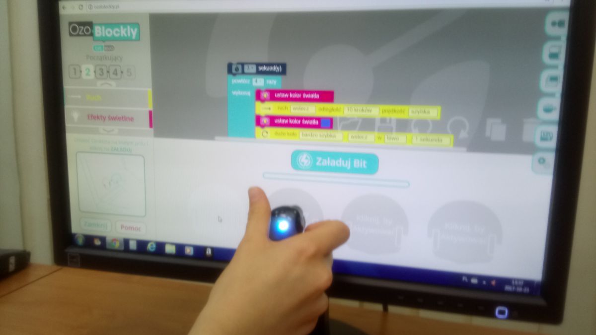 23 października nasi uczniowie wzięli udział w warsztatach robotyki. Zajęcia zorganizowała pani Małgorzata Kamińska-Haczyk (nauczyciel informatyki), a poprowadził je pan Tomasz Gil z EduSense. Dzieci programowały małe roboty zwane OzoBot’ami. Uczniowie młodsi programowali zadania za pomocą kolorowych kodów na kartce. Zdania te miał później wykonywać robot. Bardziej doświadczeni kodowali sposób poruszania się i efekty świetlne OzoBot'a za pomocą ekranu monitora. W czasie pracy uczniowie korzystali z programu OzoBlockly, który bazuje na języku programowania Scratch. Zajęcia wyzwoliły w dzieciach ogromną kreatywność i ciekawość. Okazało się, że programowanie nie jest straszne i co więcej, można z niego uczynić inspirującą i rozwijającą zabawę.