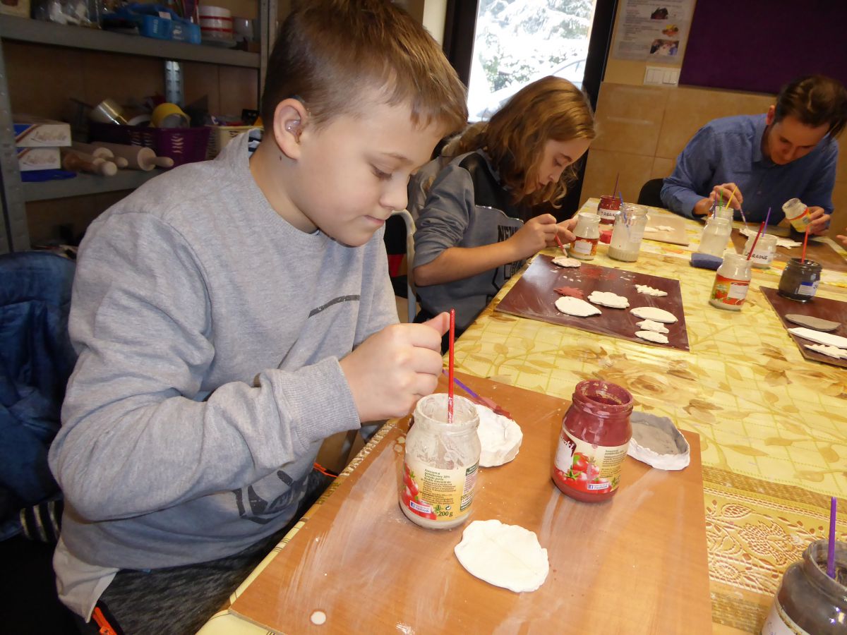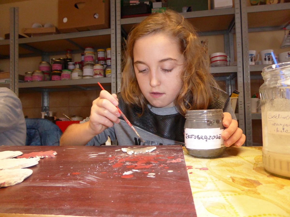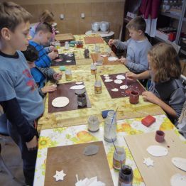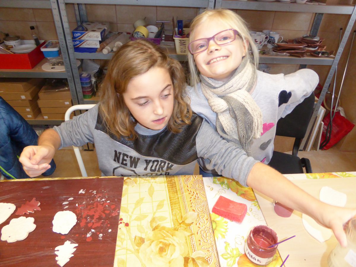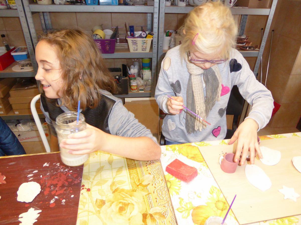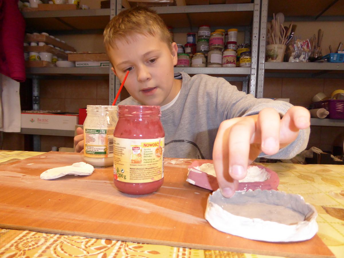 1 grudnia uczniowie klasy 4 szkoły podstawowej uczestniczyli w warsztatach w Pracowni Ceramiki Regionalnej CEMI w Świętej Katarzynie koło Kielc. Pracownię prowadzi pani Monika Iwan - absolwentka UJK w Kielcach na kierunku Wzornictwo, Policealnego Studium Projektowania Ubioru oraz Studium Projektowania i Konstrukcji Obuwia w Szkole Artystycznego Projektowania Ubioru w Krakowie. Pracę dyplomową na kierunku Wzornictwo pani Monika wykonała w ceramice i porcelanie – i właśnie to medium jest jej ulubionym materiałem w jakim pracuje. Warsztaty były już drugim spotkaniem dzieci ze sztuką tworzenia wyrobów ceramicznych. Na pierwszych zajęciach uczniowie poznali podstawowe metody pracy z gliną i pracowali w tym materiale. Wykonane przez nich prace zostały następnie wypalone w Pracowni w specjalnie do tego przystosowanych piecach. Tym razem nasi uczniowie poznali różnorodne techniki zdobienia wyrobów ceramicznych oraz sposoby ich obróbki. Przygotowali też wypalone prace do malowania i samodzielnie pokrywali je szkliwem. Po tych zabiegach prace zostaną poddane ostatniej obróbce cieplnej, w wyniku której szkliwo stwardnieje oraz nabierze właściwego sobie połysku i koloru. Już jesteśmy ciekawi, jak niepowtarzalne będą prace dzieci. Czy uczniom się podobało? Myślimy, że po obejrzeniu zdjęć z warsztatów właściwa odpowiedź nasunie się sama.
