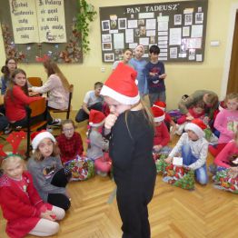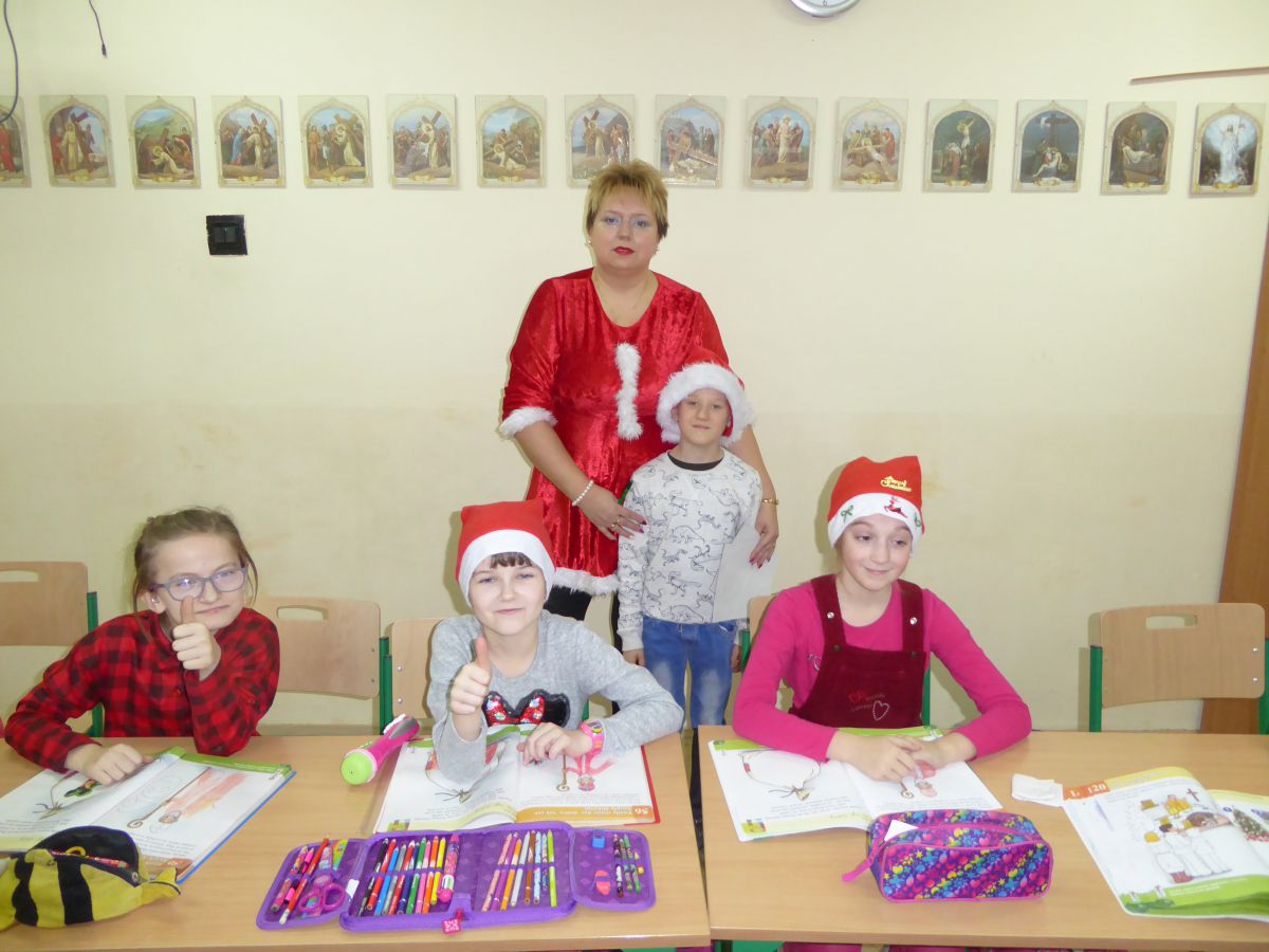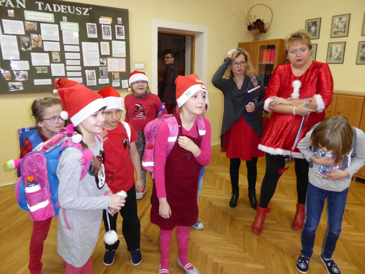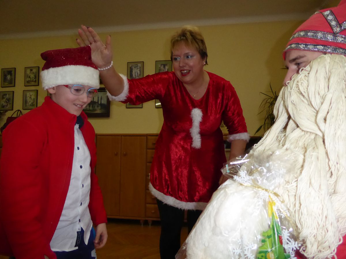Jak co roku 6 grudnia zawitał do nas Mikołaj. Z tej okazji odbył się mikołajkowy turniej sportowy, który od wielu już lat cieszy się dużym zainteresowaniem zarówno wśród najmłodszych, jak i starszych uczniów. Oprócz turnieju Samorząd Uczniowski zorganizował dzień filmowy. Do wyboru były trzy śmieszne filmy związane z tematyką tego dnia. Każdy mógł wybrać coś dla siebie. Co tu dużo mówić, Samorząd urządził nam niezłe KINO! Były sale kinowe oraz popcorn i cola, czyli to, czego prawdziwemu wielbicielowi filmów wyświetlanych na wielkim ekranie nie może zabraknąć. Kiedy długo oczekiwany gość w czerwonym stroju i z białą brodą przybył w końcu do szkoły, każdy z nas odniósł wrażenie, że wydarzenie to cudownie dopełnia ten wyjątkowy dzień. Nie do końca było jednak tak łatwo. Mikołaj rozdawał prezenty, ale tylko za wyrecytowany wierszyk lub zaśpiewaną piosenkę i (co najgorsze!) pytał, czy byliśmy grzeczni…. Okazało się, że wielu z nas musiało sobie przypomnieć to i owo, ale na szczęście prezenty dostaliśmy wszyscy. Po takich wrażeniach podekscytowanie, energia i świetny humor towarzyszył nam już do końca dnia!