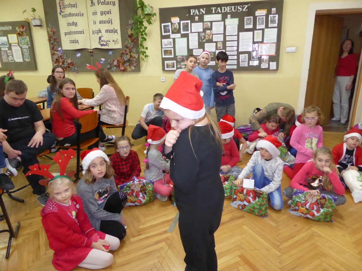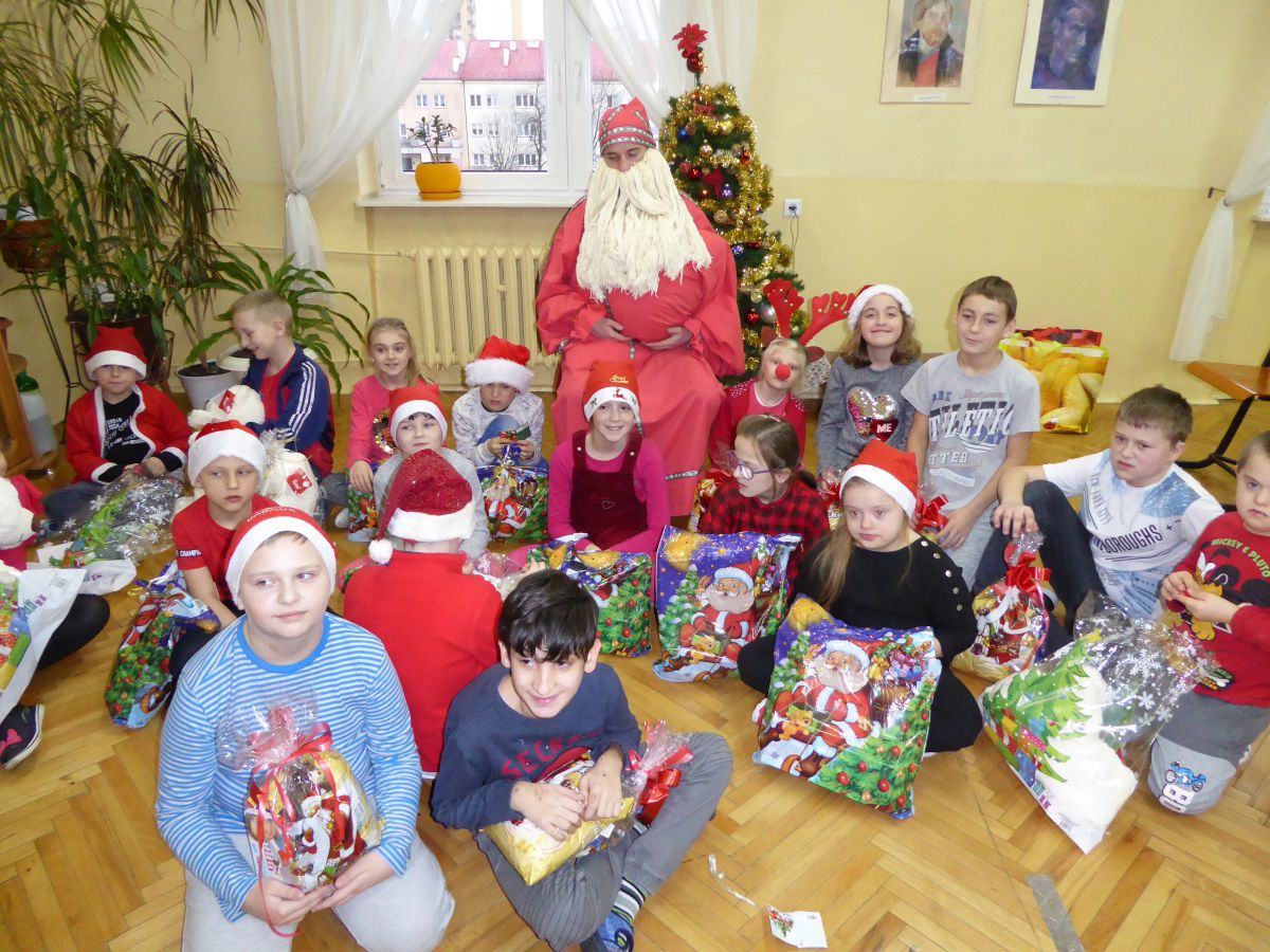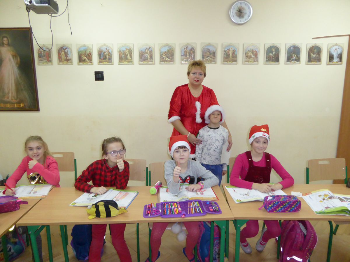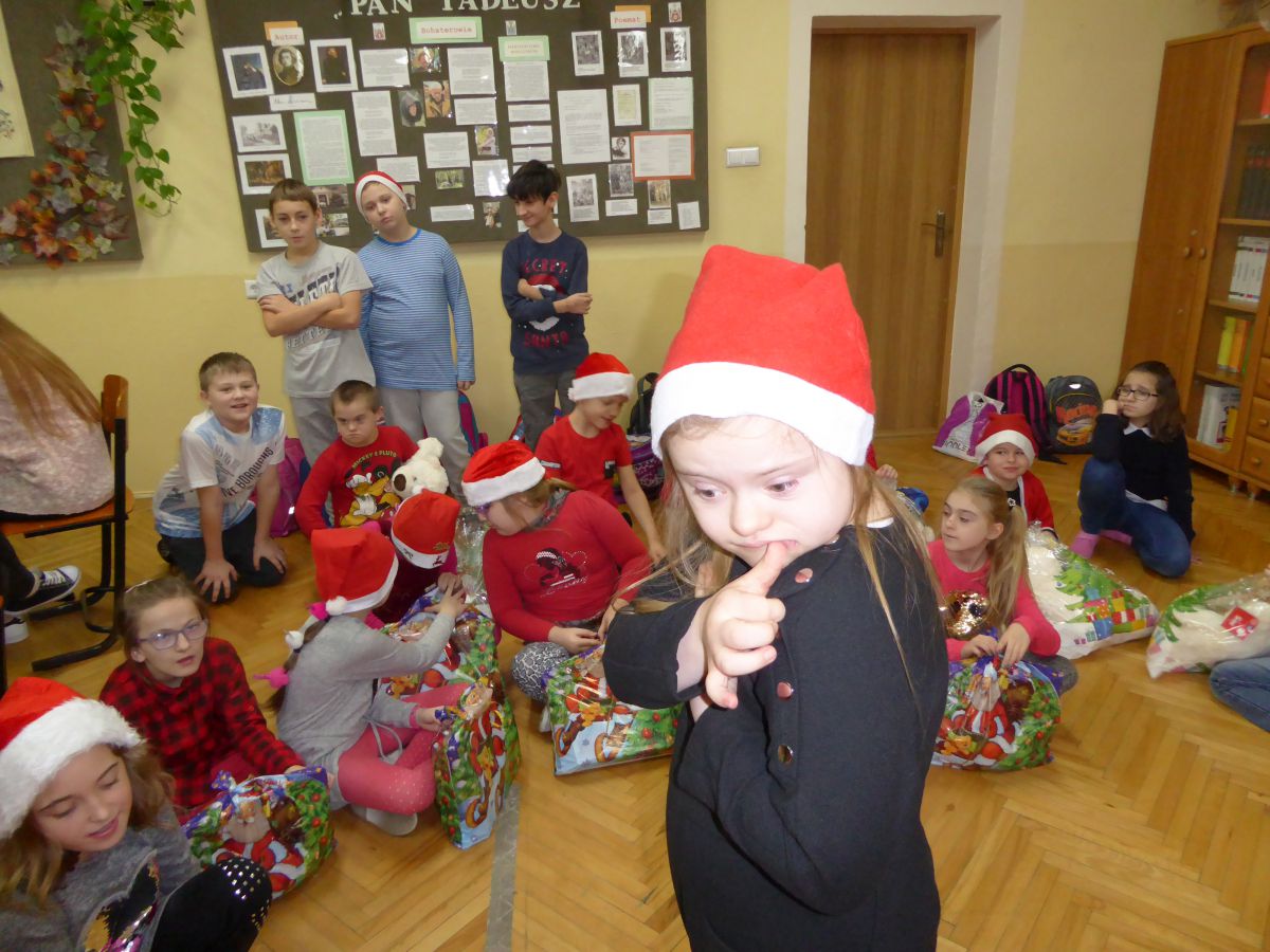 Jak co roku 6 grudnia zawitał do nas Mikołaj. Z tej okazji odbył się mikołajkowy turniej sportowy, który od wielu już lat cieszy się dużym zainteresowaniem zarówno wśród najmłodszych, jak i starszych uczniów. Oprócz turnieju Samorząd Uczniowski zorganizował dzień filmowy. Do wyboru były trzy śmieszne filmy związane z tematyką tego dnia. Każdy mógł wybrać coś dla siebie. Co tu dużo mówić, Samorząd urządził nam niezłe KINO! Były sale kinowe oraz popcorn i cola, czyli to, czego prawdziwemu wielbicielowi filmów wyświetlanych na wielkim ekranie nie może zabraknąć. Kiedy długo oczekiwany gość w czerwonym stroju i z białą brodą przybył w końcu do szkoły, każdy z nas odniósł wrażenie, że wydarzenie to cudownie dopełnia ten wyjątkowy dzień. Nie do końca było jednak tak łatwo. Mikołaj rozdawał prezenty, ale tylko za wyrecytowany wierszyk lub zaśpiewaną piosenkę i (co najgorsze!) pytał, czy byliśmy grzeczni…. Okazało się, że wielu z nas musiało sobie przypomnieć to i owo, ale na szczęście prezenty dostaliśmy wszyscy. Po takich wrażeniach podekscytowanie, energia i świetny humor towarzyszył nam już do końca dnia!