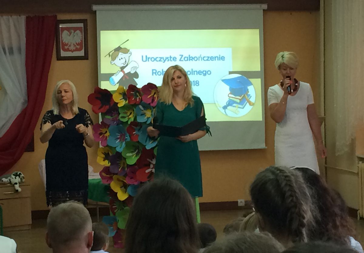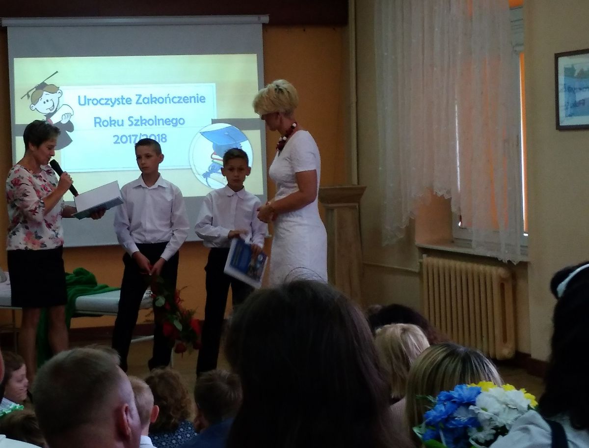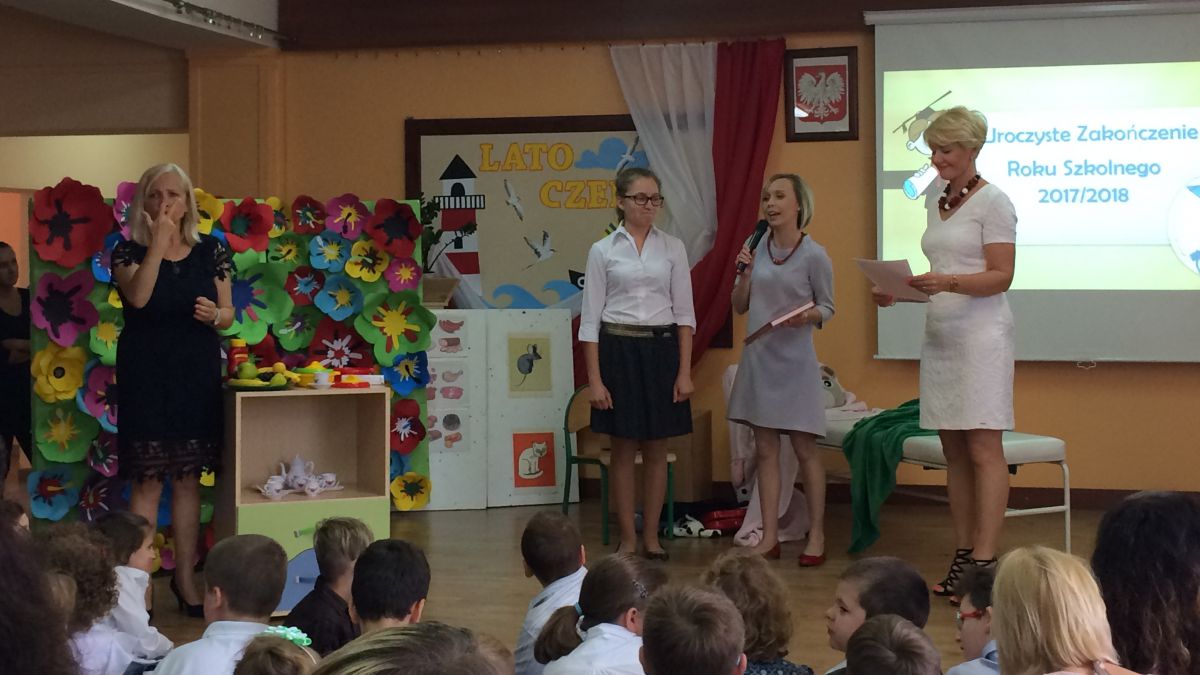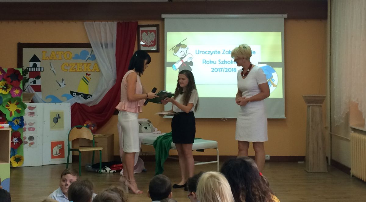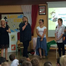 22 czerwca odbyło się uroczyste zakończenie roku szkolnego 2017/2018, które rozpoczęła inscenizacja bajki "Pan Kotek był chory" w wykonaniu uczniów klasy III SP. Podsumowaliśmy rok naszej wytężonej pracy, ale wspomnieniami wróciliśmy również do miłych chwil, które pozwalały nam się oderwać od obowiązków szkolnych - wycieczek. Najlepsi uczniowie naszej szkoły (a było ich niemało) zostali wyróżnieni i nagrodzeni. Podziękowania należały się również rodzicom dzielnie wspierającym nas w codziennych działaniach. Po długiej i męczącej pracy wreszcie przyszedł czas na zasłużony odpoczynek. Wakacje pewnie szybko miną, ale mamy motywację, by wrócić i pracować kolejny rok, bo potem... Znów będą wakacje!