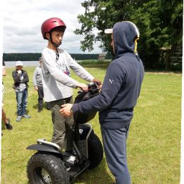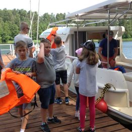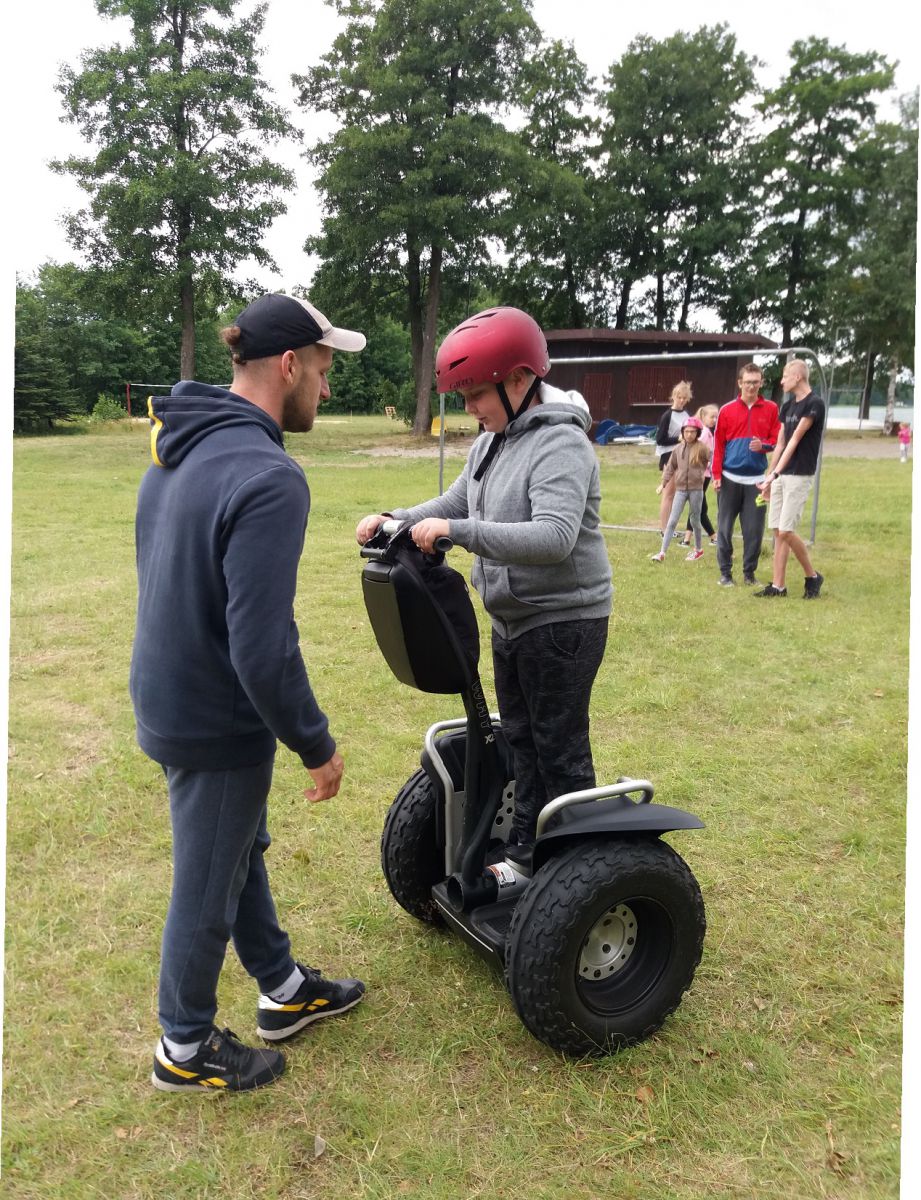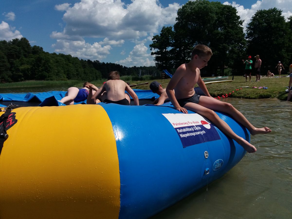 W wakacje spędziliśmy dwa tygodnie na obozie rehabilitacyjno-sportowym w Augustowie, zorganizowanym przez Podlaskie Stowarzyszenie Sportowe Osób Niepełnosprawnych "START". Organizatorzy zapewnili nam wiele atrakcji. Mogliśmy korzystać z hotelowego basenu, gdzie doskonaliliśmy swoje umiejętności pływackie. Plażowaliśmy nad jeziorem Białym, po którym pływaliśmy także żaglówką, rowerkami, kajakami i statkiem. Nauczyliśmy się jeździć na segwayu - to nie jest trudne. Poznawaliśmy malownicze okolice Augustowa oraz zwiedziliśmy stolicę województwa podlaskiego - Białystok. Korzystaliśmy z masażu klasycznego wykonywanego przez sympatycznych rehabilitantów. Czas na obozie minął nam bardzo szybko. Do domu wróciliśmy opaleni i zadowoleni.