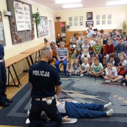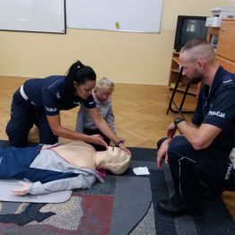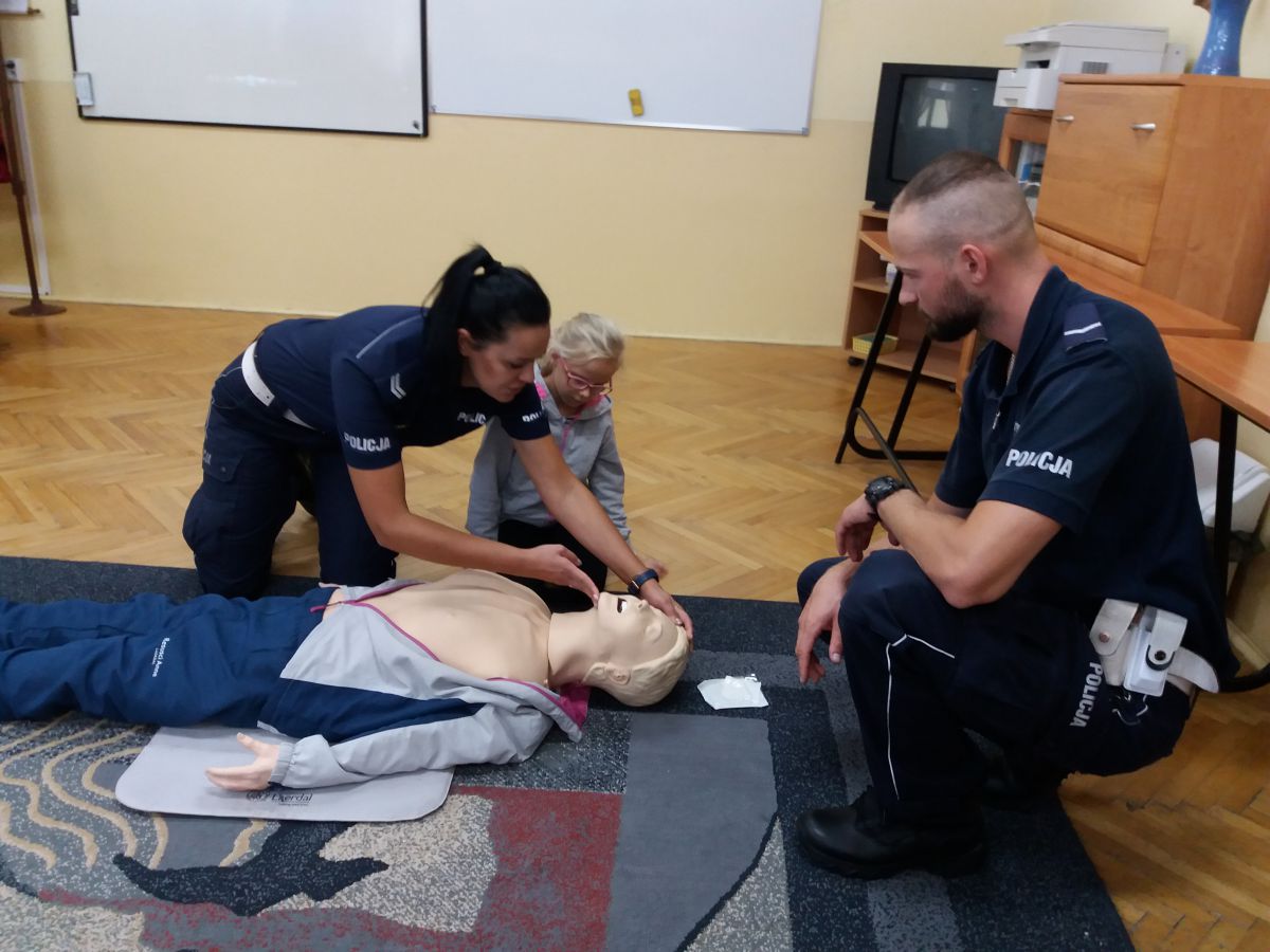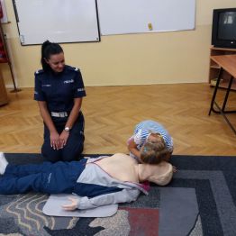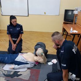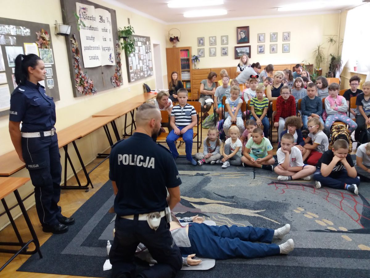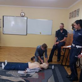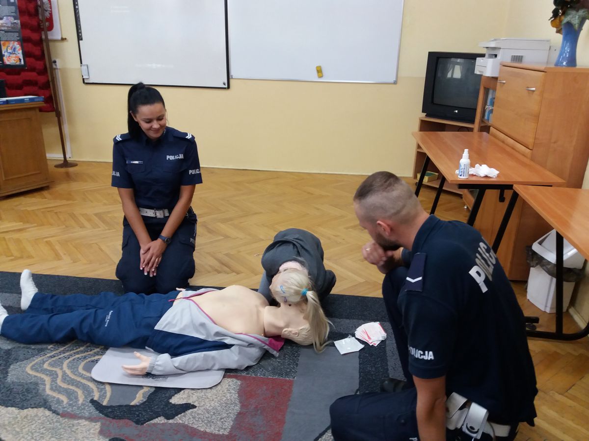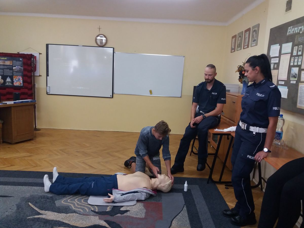 Podczas utraty czynności życiowych o przeżyciu decydują pierwsze 4 minuty. Służby ratownicze nie zawsze mogą zdążyć przyjechać na miejsce w tym właśnie czasie. Ważne zatem, żeby edukację z zakresu udzielania pierwszej pomocy rozpoczynać jak najwcześniej, aby każdy mógł udzielić pomocy ratującej ludzkie życie. Z tych właśnie powodów 20 września uczniowie naszego Ośrodka uczestniczyli w zajęciach prowadzonych przez policjantów z Wydziału Ruchu Drogowego Komendy Miejskiej Policji w Kielcach. Na początku wyświetlony został film edukacyjny, po którym odbył się wykład i pokaz udzielania pierwszej pomocy. Każdy miał możliwość sprawdzenia swoich umiejętności na manekinie. Zajęcia cieszyły się dużym zainteresowaniem, a wszyscy uczestnicy zgodnie stwierdzili, że udzielanie pomocy nie jest trudne.