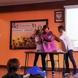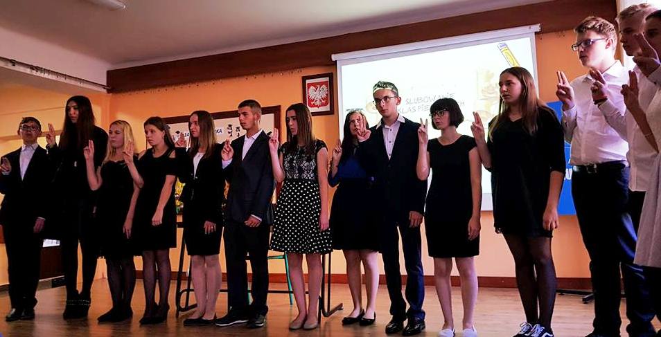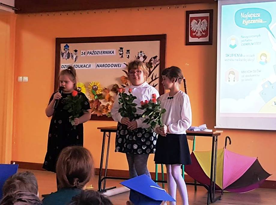 12 października odbyła się akademia z okazji Dnia Edukacji Narodowej połączona z obchodami Międzynarodowego Dnia Głuchych (przypadającego 30 września) oraz ze ślubowaniem klas pierwszych. Na koniec uroczystości podsumowano projekt Erasmus +, w ramach którego na zagraniczne staże do Niemiec (w latach szkolnych 2016/2017 i 2017/2018) wyjechało łącznie aż 20 uczniów naszego Technikum. Było bardzo uroczyście, a jednocześnie zabawnie. Nasi kochani pedagodzy przyjęli od nas najserdeczniejsze życzenia: wyrozumiałości i pogody ducha, satysfakcji i radości z pracy, myślących uczniów, miłych słów od absolwentów po latach, skupienia w oczach uczniów na każdej lekcji oraz niewyczerpanych pokładów cierpliwości. Z tego miejsca obiecujemy, że postaramy się, aby większość z tych życzeń naprawdę się spełniła. Drodzy Nauczyciele! Z całego serca jeszcze raz:
