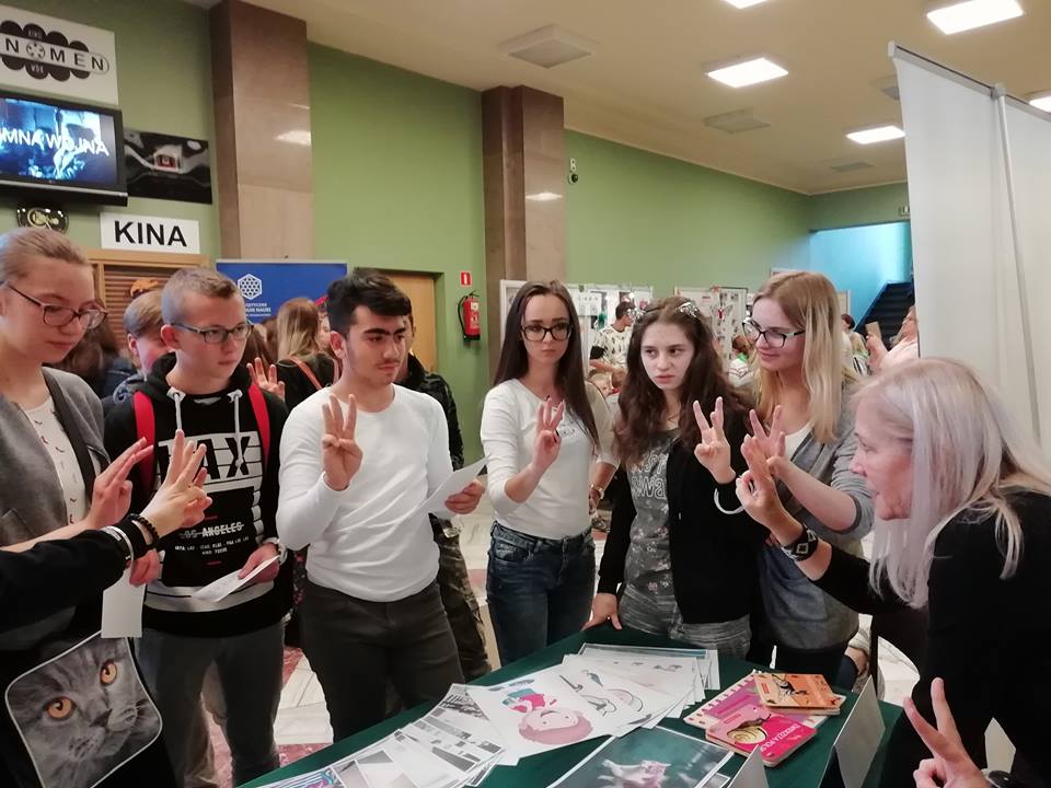 26 i 27 października wzięliśmy udział w Festiwalu Kreatywnej i Aktywnej Edukacji współorganizowanym przez Wojewódzki Dom Kultury oraz Wojewódzką Bibliotekę Publiczną w Kielcach. Już w piątek - 26 października, nasi uczniowie niesłyszący ze Szkolnego Koła Kultury Głuchych przeprowadzili zajęcia „W bogactwie świata ciszy”, w ramach których uczyli języka migowego. Za twórcze podejście do nauki i promowanie języka migowego opiekunki Koła - Stanisława Zakrzewska i Jolanta Krajewska, otrzymały „Laur Mistrza Kreatywnej i Aktywnej Edukacji 2018”. GRATULUJEMY!
