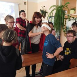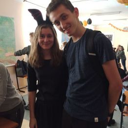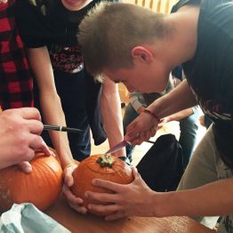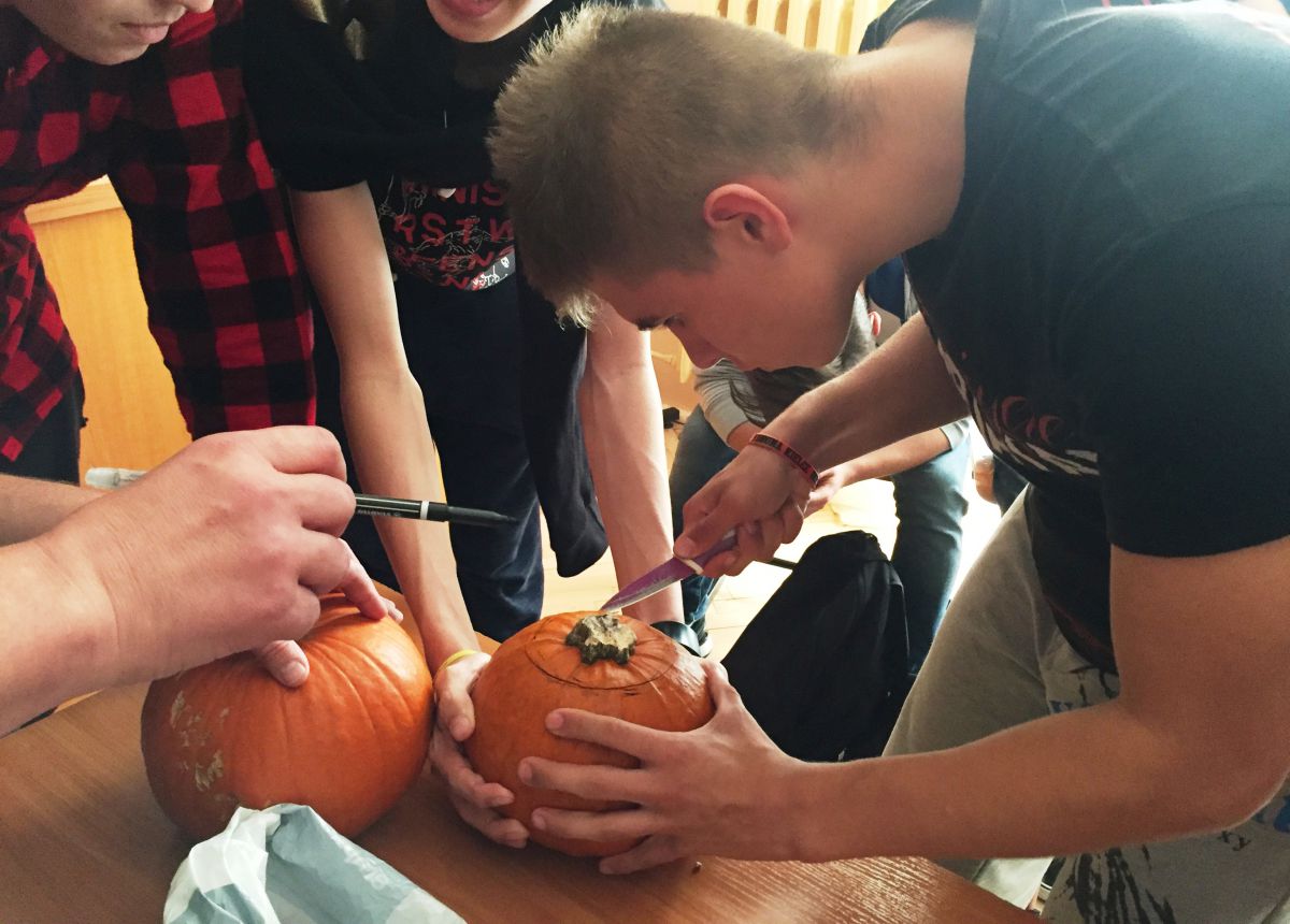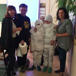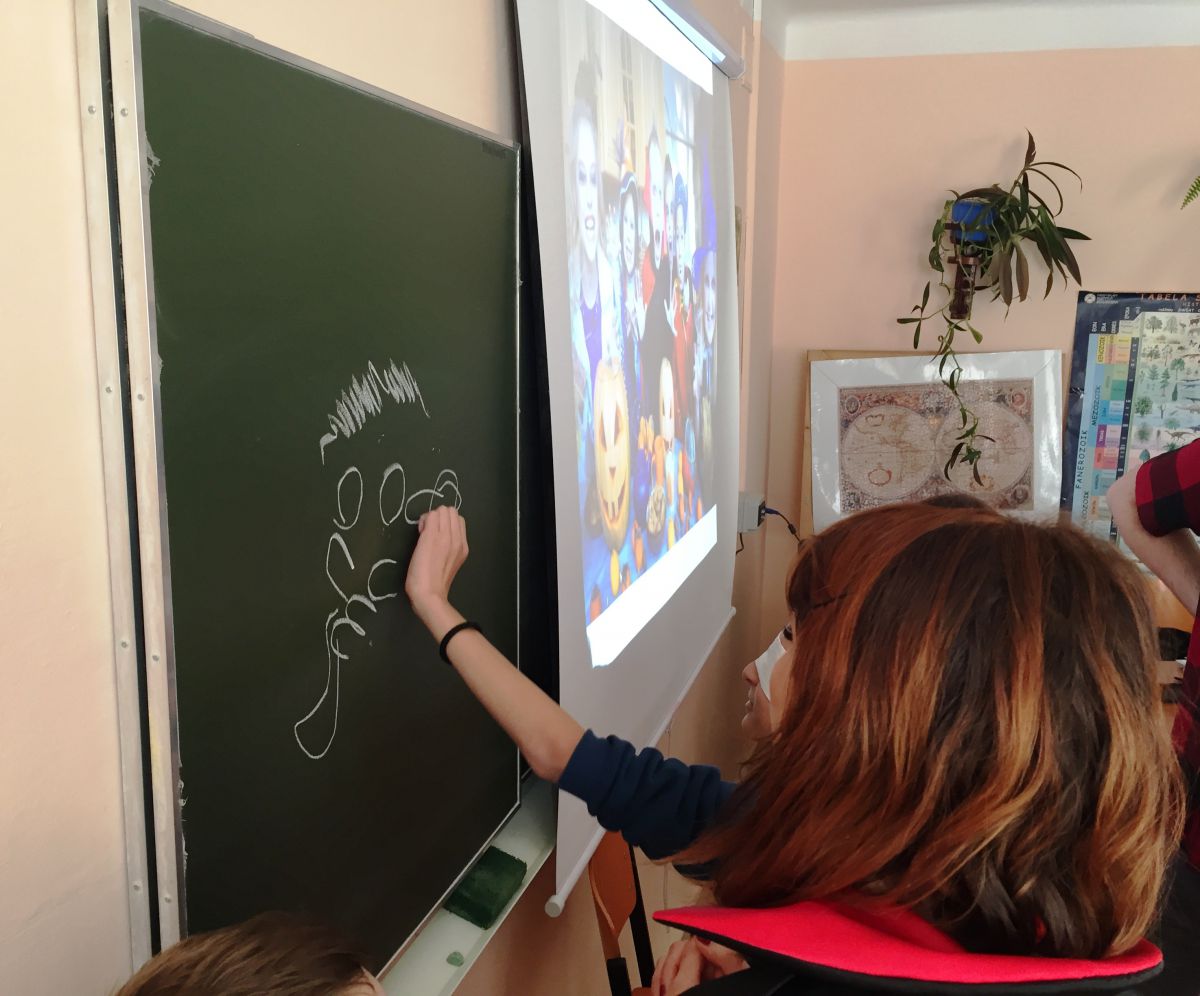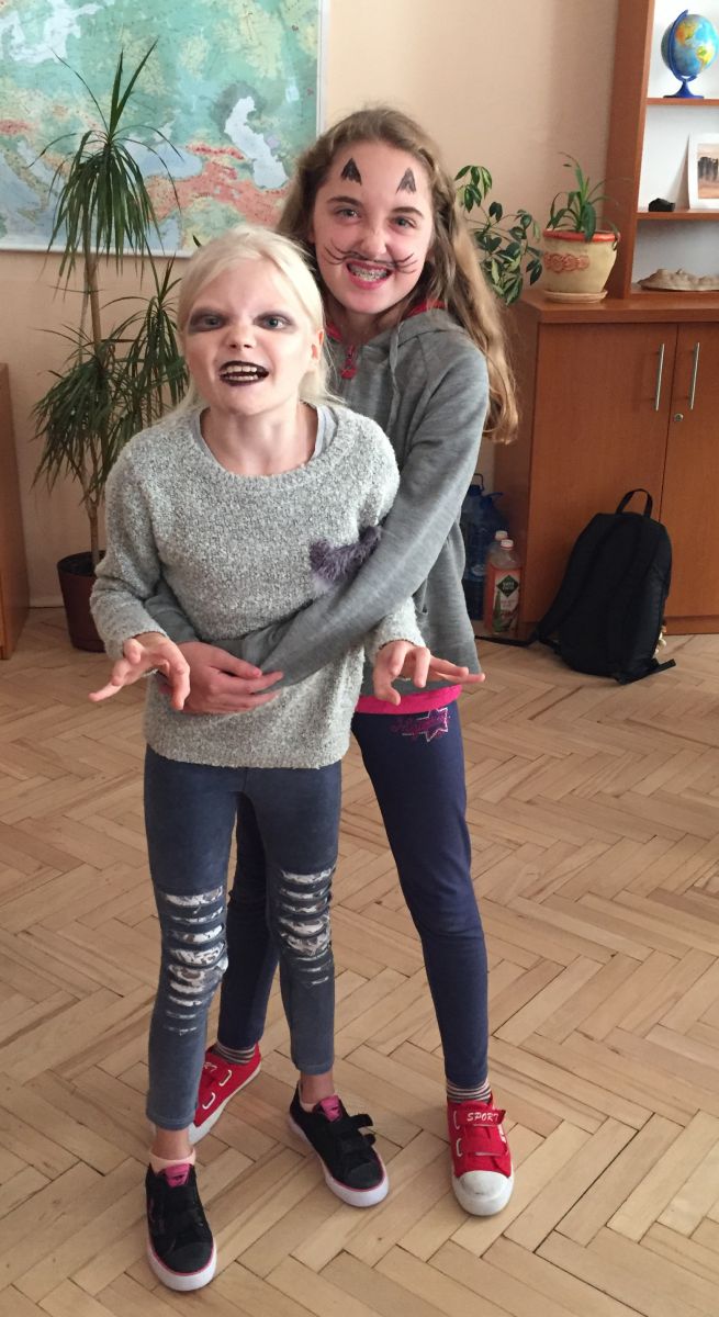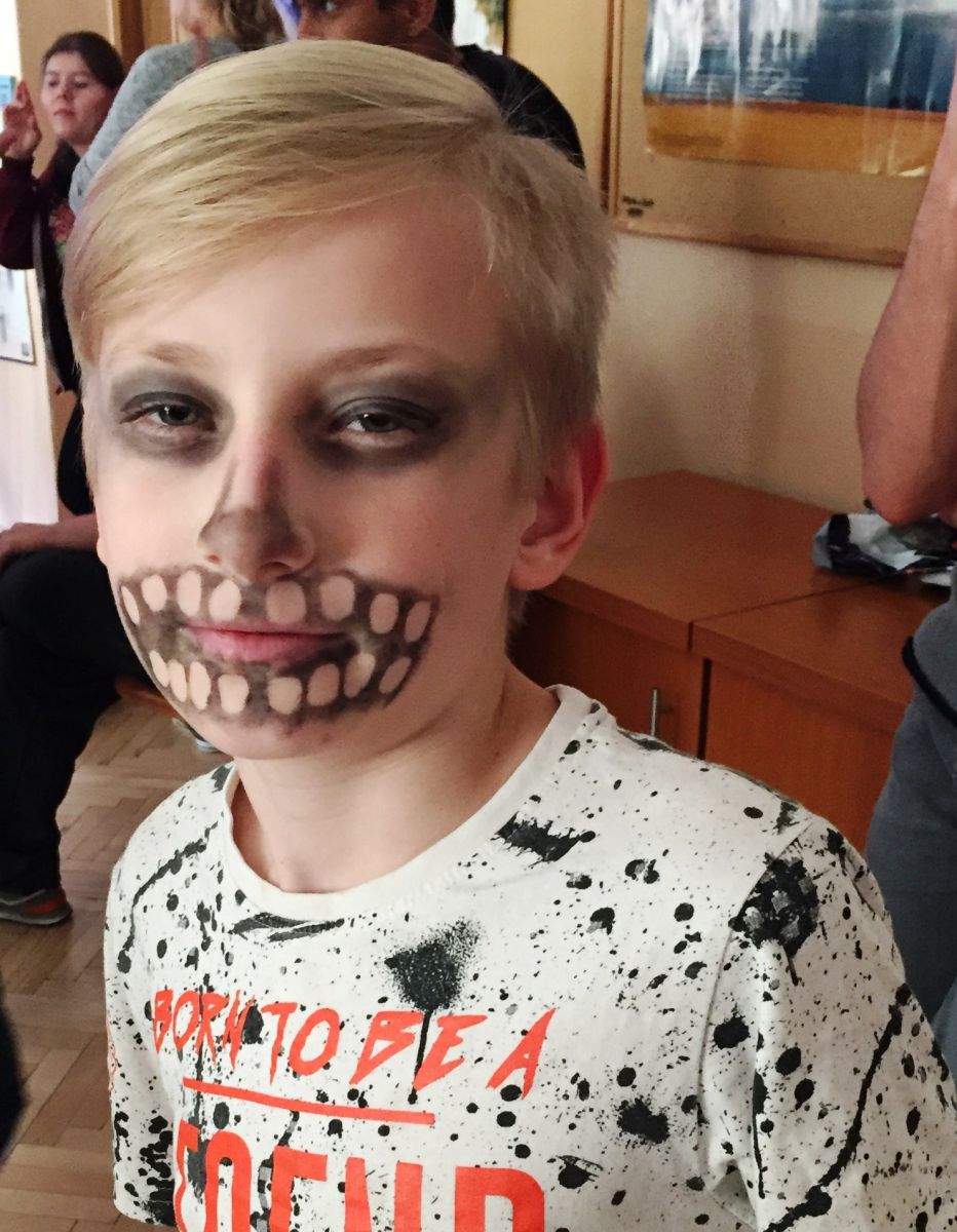 Dziś odbyła się nietypowa lekcja języka angielskiego, której celem było przybliżenie zwyczajów i symboli święta Halloween. Uczniowie mieli okazję dowiedzieć się gdzie i dlaczego narodziła się ta tradycja, poznać angielskie słownictwo związane z obchodami Halloween, a także uczestniczyć w kilku typowych zabawach z nim związanych. Było zatem tworzenie pajęczej sieci, rysowanie straszliwych potworów, a nawet owijanie mumii. Oprócz tego malowanie twarzy, konkurs rysunków i wydrążania dyni oraz tworzenia z nich słynnych Jack-o'-Lanterns. Uczestnicy konkursów otrzymali w nagrodę słodycze, jak w znanej zabawie "Trick or treat" czyli ,,Cukierek albo psikus". Wszyscy świetnie się bawili, a przy okazji wiele nauczyli!