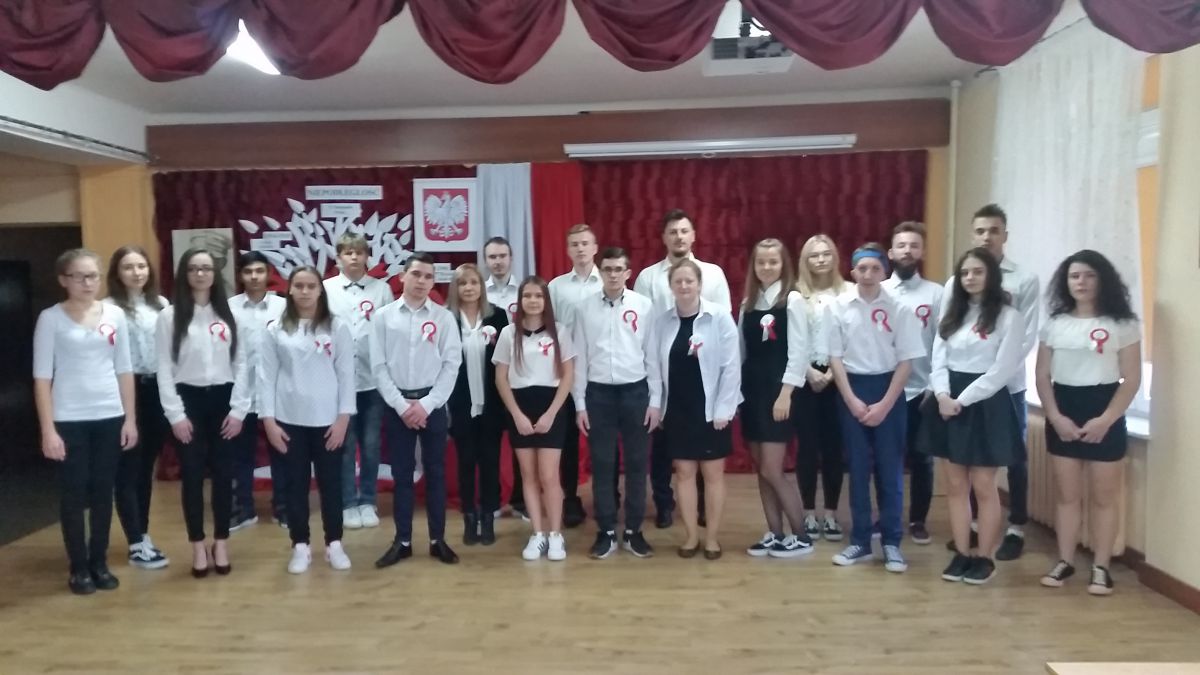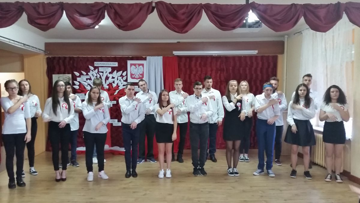 Dziś, o godzinie 11:00, podobnie jak inni uczniowie wszystkich polskich szkół, odśpiewaliśmy hymn narodowy. Uczciliśmy w ten sposób wyjątkową rocznicę odzyskania niepodległości przez Polskę. To już 100 LAT NIEPODLEGŁEJ!  Odśpiewanie hymnu zainaugurowało obchody rocznicy w naszej szkole. A zatem na tym nie koniec!