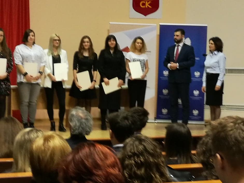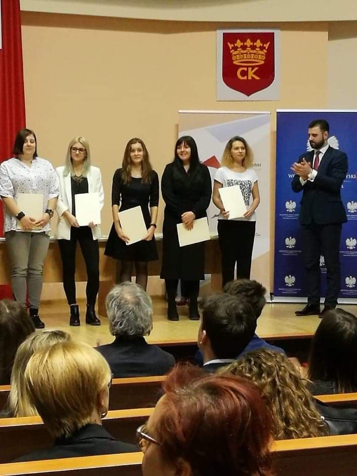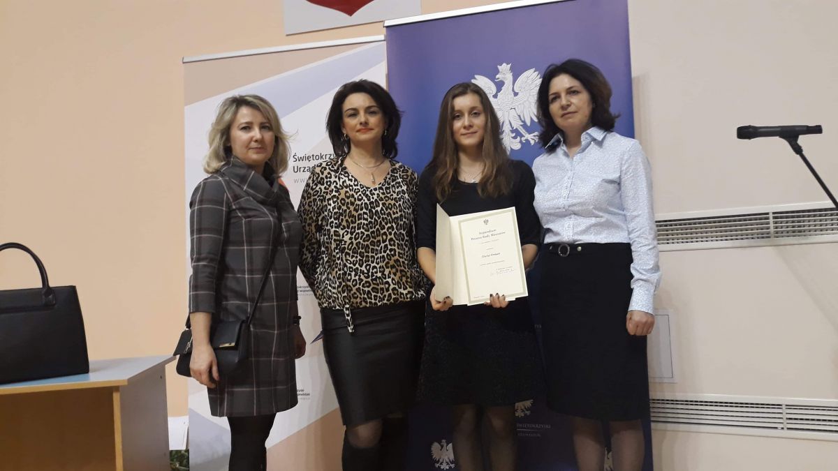 6 lutego w siedzibie Świętokrzyskiego Urzędu Wojewódzkiego odbyła się uroczystość wręczenia dyplomów dla stypendystów Prezesa Rady Ministrów oraz ministra właściwego do spraw oświaty i wychowania. Z województwa świętokrzyskiego stypendia Prezesa Rady Ministrów otrzymało 131 uczniów, a 4 uczniów otrzymało stypendium ministra właściwego do spraw oświaty i wychowania za wybitne osiągnięcia edukacyjne w roku szkolnym 2017/2018. W grupie najlepszych uczniów znalazła się także Daria Orman - nasza uczennica klasy IIb technikum. Serdecznie gratulujemy!!!!!
