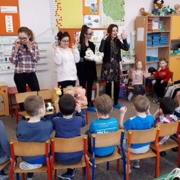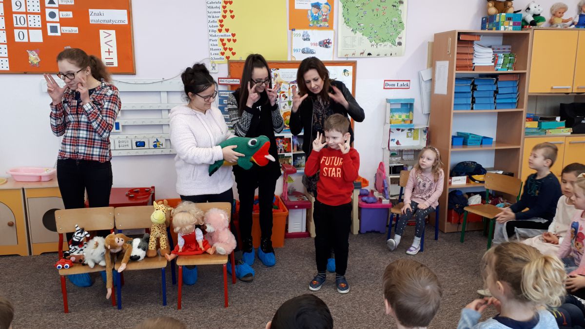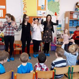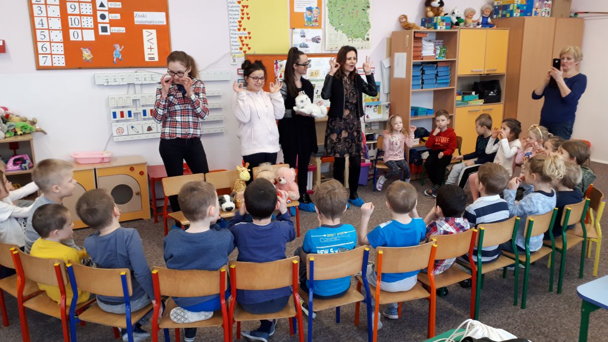W ramach akcji ,,Od przedszkola...do integracji", którą zapoczątkowaliśmy w ubiegłym roku, nasze uczennice z klasy IV technikum przeprowadziły zajęcia języka migowego w Przedszkolu Samorządowym nr 30 w Kielcach. Lekcja podobała się chyba wszystkim dzieciom, bo z uwagą śledziły swoje starsze koleżanki, które prezentowały znaki, słowa i zdania w języku migowym. Każdy był skupiony i zaangażowany. Wygląda na to, że lekcja zostanie zapamiętana na zawsze :)