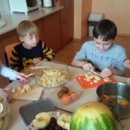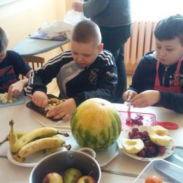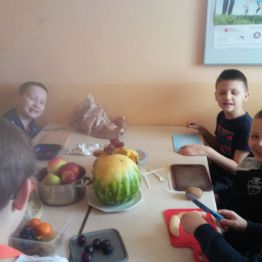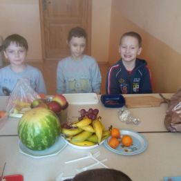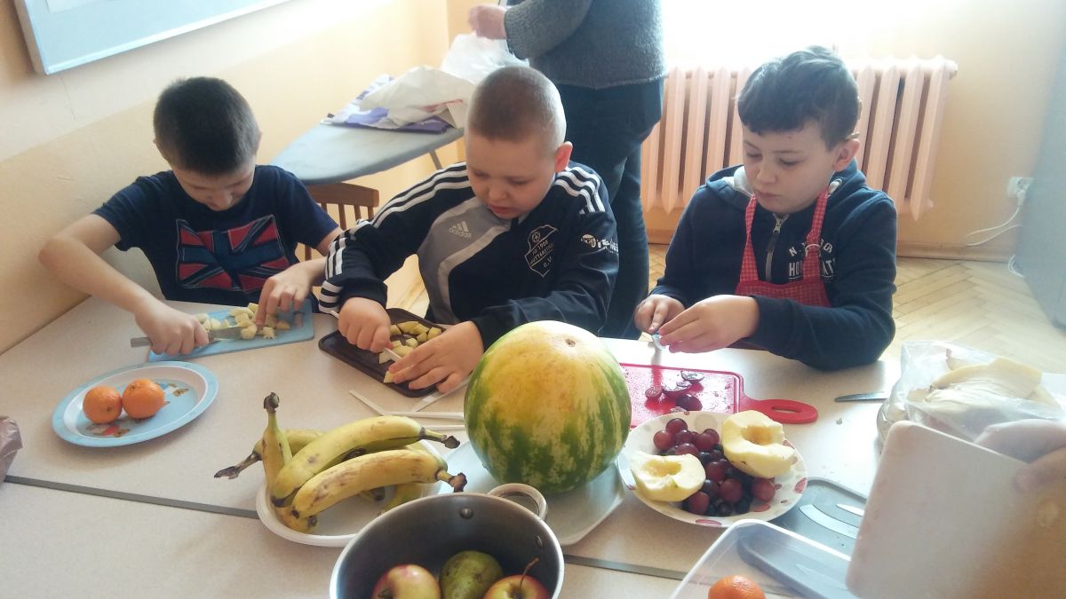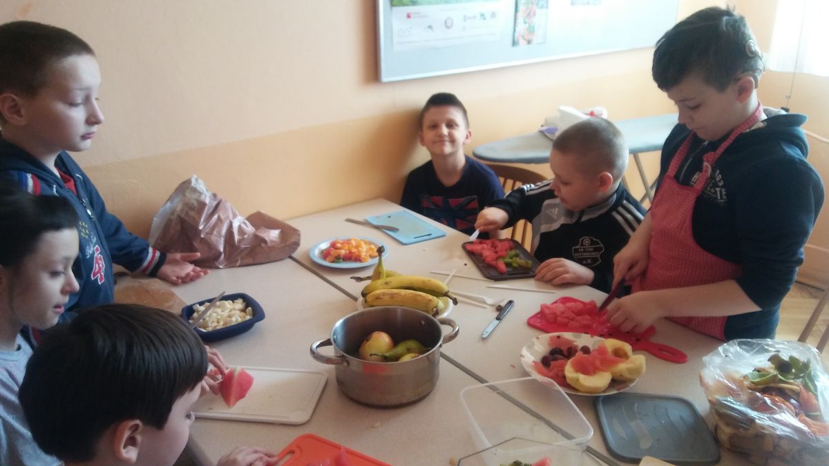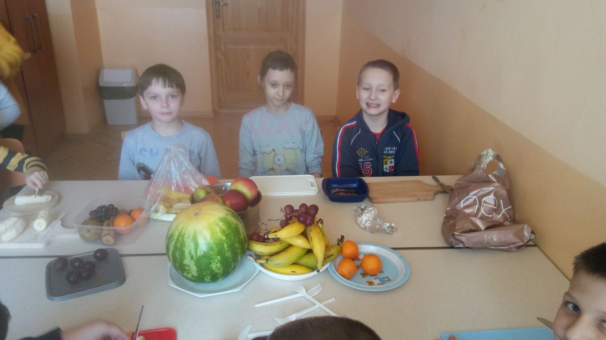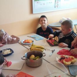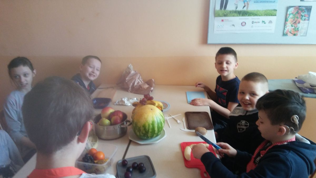 W poniedziałek (18 marca) w naszej szkole było smacznie, a przede wszystkim zdrowo! Uczniowie klasy Ic i II/IIIa własnoręcznie przygotowali pyszną, witaminową sałatkę. Dzieci przyniosły przeróżne owoce. Te powszechnie znane i te egzotyczne. Nie zabrakło oczywiście ulubionych jabłek, gruszek i bananów, ale pojawiły się też mniej popularne wśród dzieci śliwki. Wszyscy mieli ,,soczyste minki" na widok tak smakowitych owoców . Każdy ochoczo zabrał się też do pracy. Dzieci samodzielnie kroiły i przyrządzały sałatkę przestrzegając zasad higieny i bezpieczeństwa. Spotkanie stało się okazją do przypomnienia uczniom o zasadach zdrowego, racjonalnego odżywiania się i znaczenia owoców dla naszego zdrowia i samopoczucia.