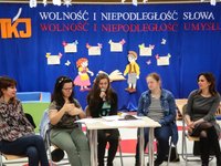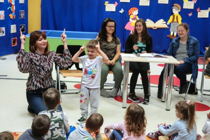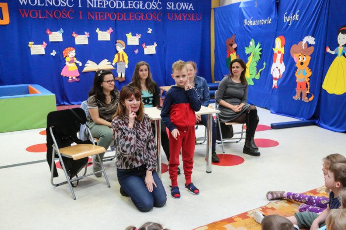W ramach Tygodnia Kultury Języka organizowanym w Przedszkolu Samorządowym nr 8 z Oddziałami Integracyjnymi nasi uczniowie zaprezentowali bajkę w języku migowym pt. ,,Kopciuszek”. Celem zajęć było rozwijanie czytelnictwa, kultury języka oraz zapoznanie dzieci ze znakami języka migowego. Najmłodsi z zainteresowaniem i dużym zaangażowaniem uczestniczyli w zajęciach.