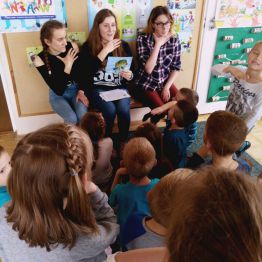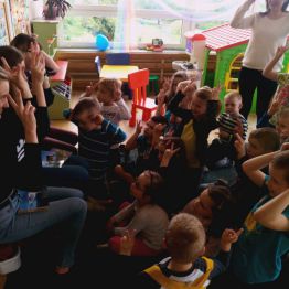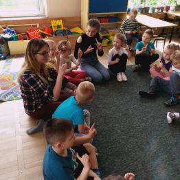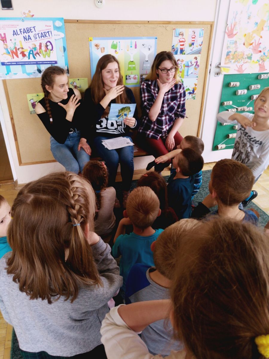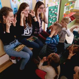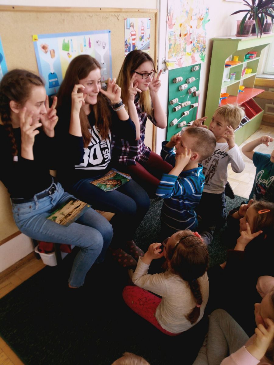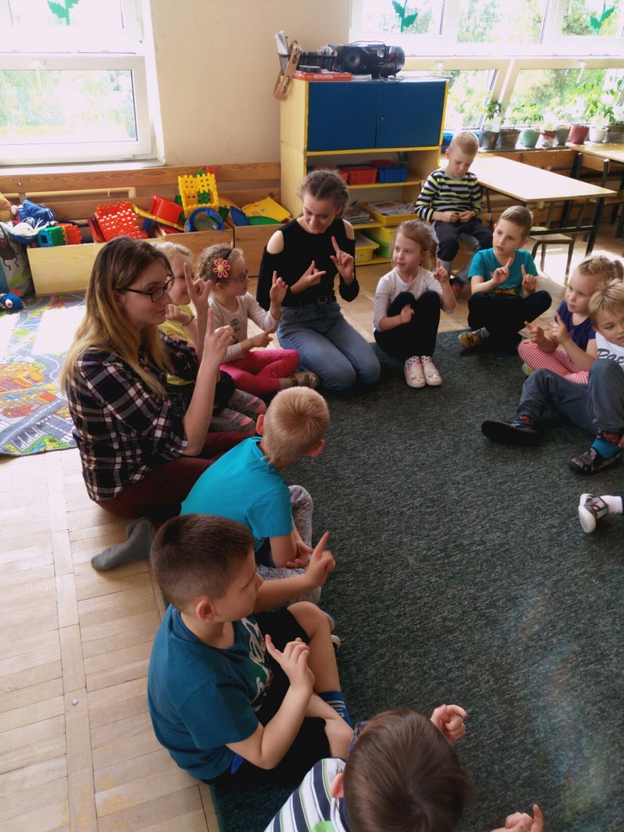 W ramach programu ,, Od przedszkola … do integracji ” nasze uczennice: Daria, Anna i Weronika przeprowadziły zajęcia dla przedszkolaków z Samorządowego Przedszkola nr 40 w Kielcach. Podczas lekcji dzieci poznały znaki zwierząt w języku migowym, co ułatwiło przełamanie bariery w komunikowaniu się. Zajęcia cieszyły się dużym zainteresowaniem przedszkolaków, które aktywnie brały udział w zabawie. Swoją otwartością, pogodą ducha oraz gotowością do współdziałania dały nam ogromny zastrzyk pozytywnej energii, którą chętnie wykorzystamy w codziennym działaniu i realizowaniu naszych planów.