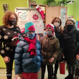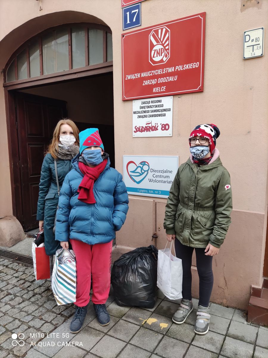 Nasza Placówka wspólnie z Diecezjalnym Centrum Wolontariatu w Kielcach włączyła się, w grudniu, w akcję pomocy dla osób bezdomnych. Od początku miesiąca zbieraliśmy skarpety po to, by nikt nie marzł w zimowe dni. Różne były wzory i kolory, skarpety mniejsze, większe, wełniane, ocieplane, długie, krótkie, wzorzyste, gładkie, z puszkiem, klasyczne, w kratkę, i z nadrukiem. Mamy nadzieję, że każdy potrzebujący znajdzie tutaj coś dla siebie. Przedstawiciele uczniów z naszej Szkoły, wraz z opiekunami przekazali 17 grudnia zebrane dary do Diecezjalnego Centrum Wolontariatu przy Caritas Diecezji Kieleckiej. Stamtąd skarpety trafią do osób bezdomnych.