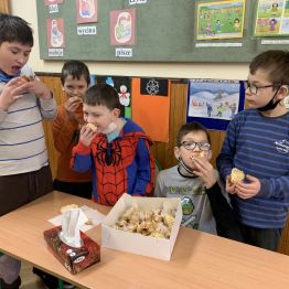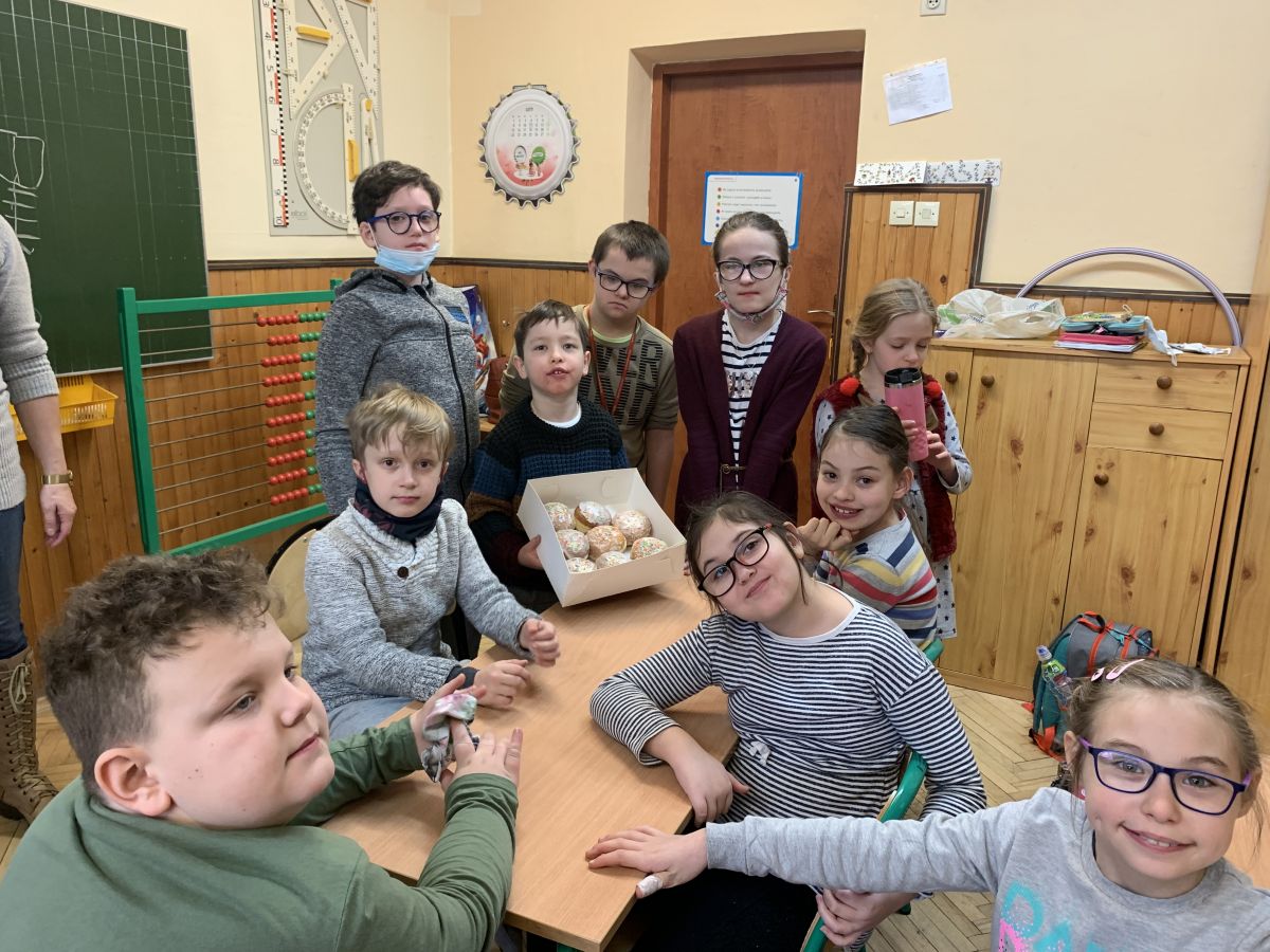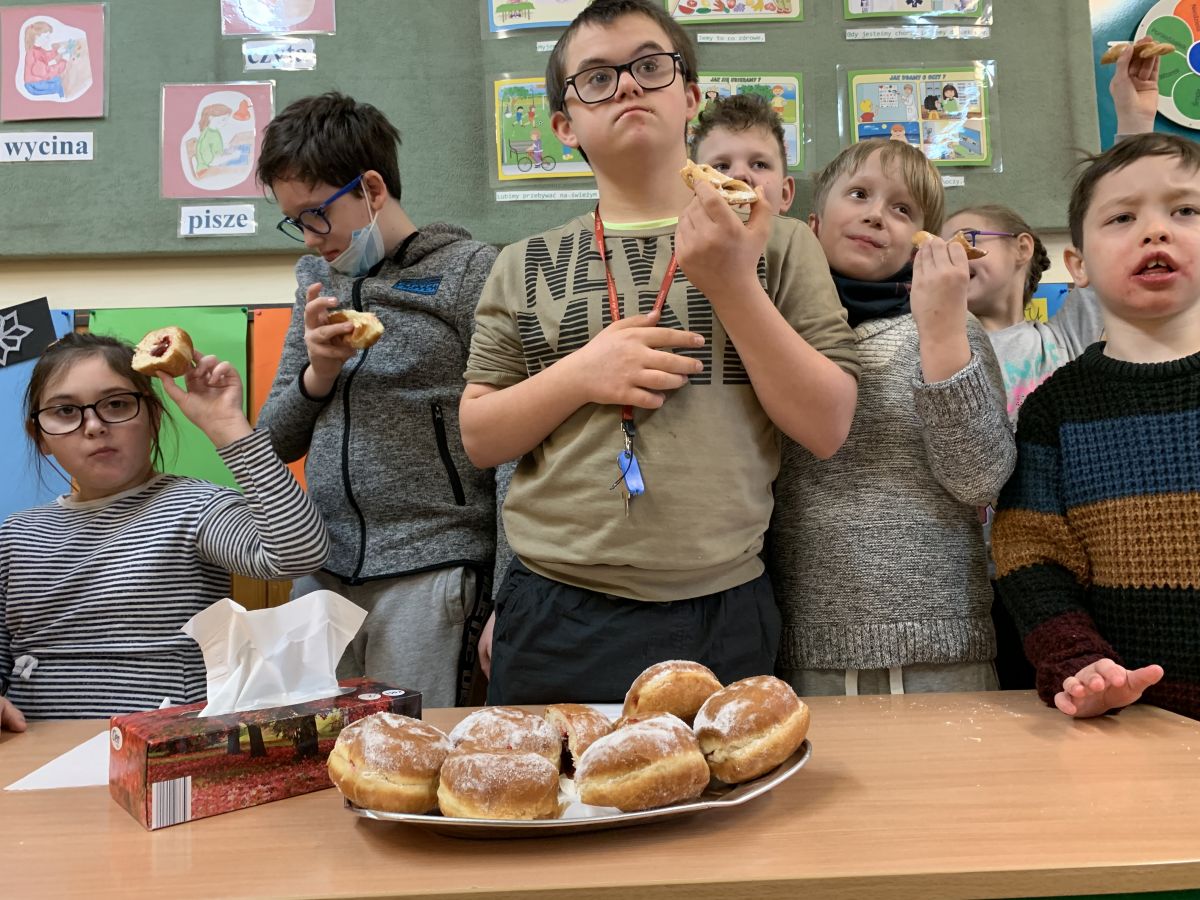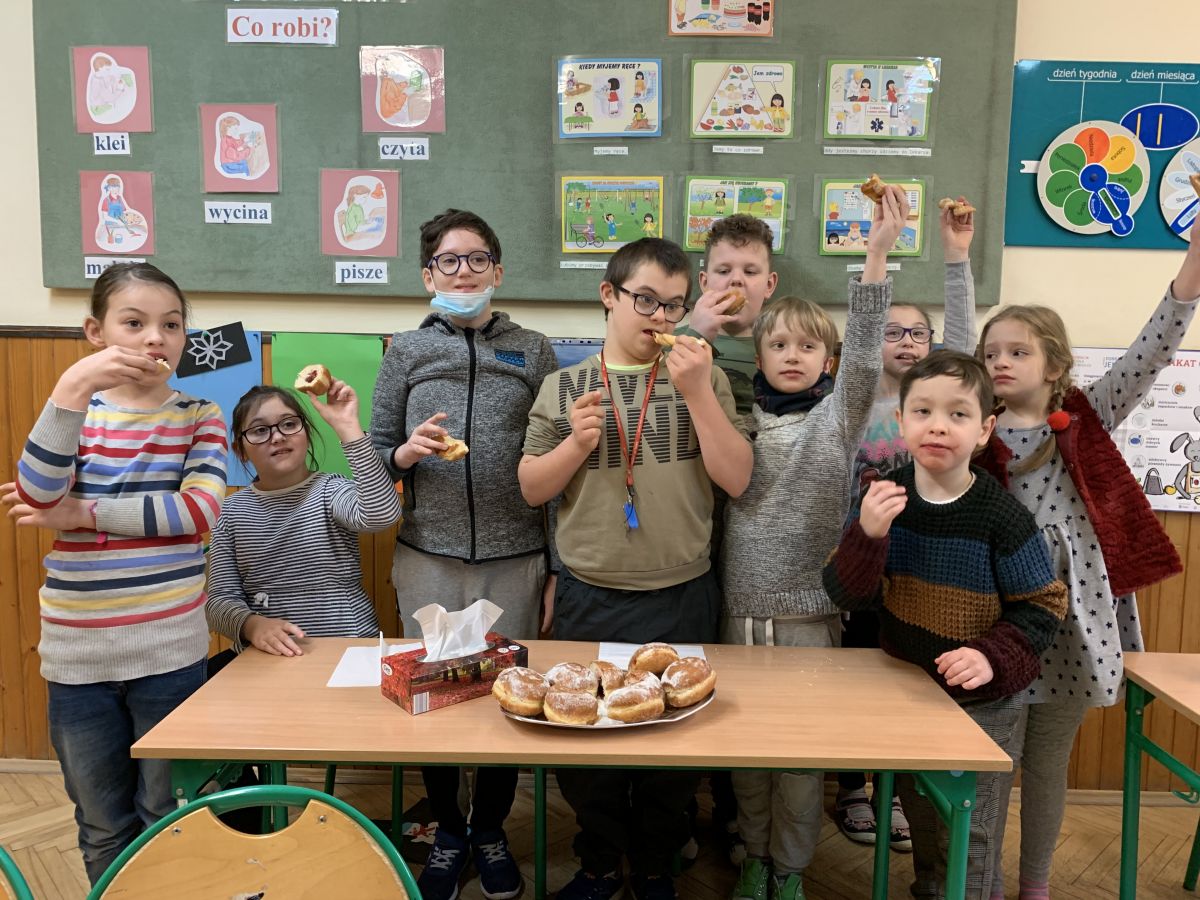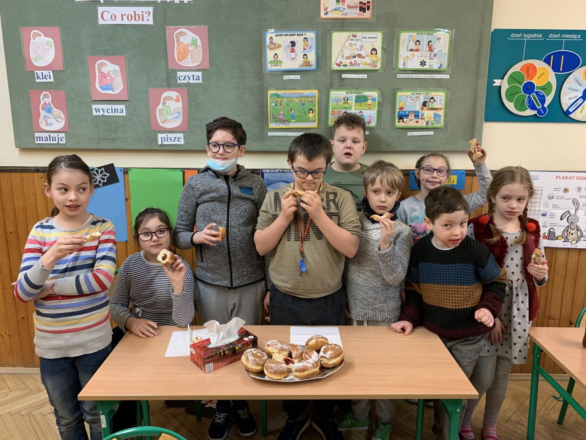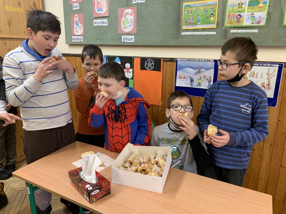 Tłusty czwartek- tak, jak każe tradycja każdy w ten dzień powinien zjeść pączka. Tak też zrobili uczniowie klas 1-3 Szkoły Podstawowej. Dziękujemy mamie Filipa z klasy 1 za pyszne pączki i faworki. Niespodziankę przygotowała nam również mama Igora z klasy 1. Ten dzień zaliczamy do wyjątkowo słodkich.