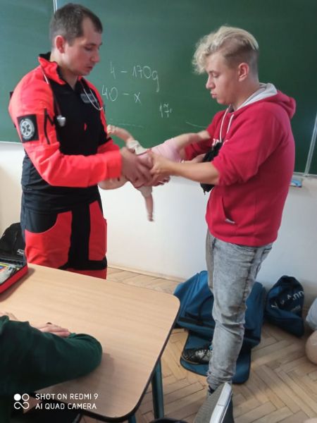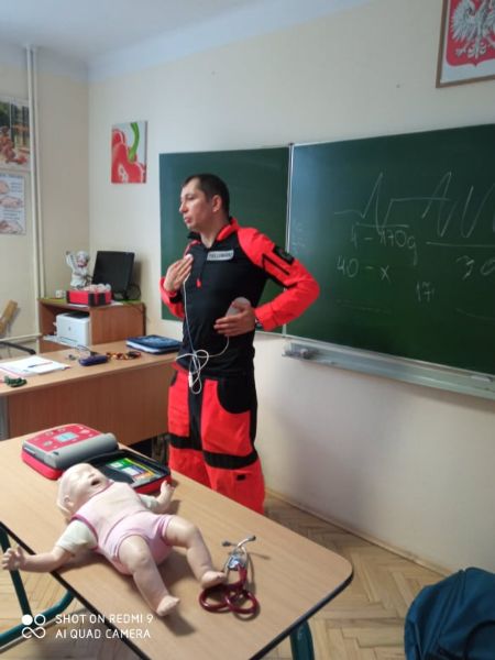 W naszej szkole gościliśmy ratownika medycznego. Uczniowie mieli okazję poznać specyfikę tego zawodu jak również uczyli się w jaki sposób należy sprawdzać u człowieka przytomność, oddech, tętno oraz w jaki sposób można pomóc osobie poszkodowanej zanim przyjedzie zespół ratownictwa medycznego. Każdy z uczniów miał szansę spróbować przeprowadzić sztuczne oddychanie i masaż serca na fantomie oraz poprawnie wykonać zgłoszenie o zaistniałym zdarzeniu do dyspozytorni pogotowia ratunkowego. Zajęcia przyciągnęły uwagę uczniów, a Pan ratownik udzielił odpowiedzi na wszystkie nurtujące pytania.