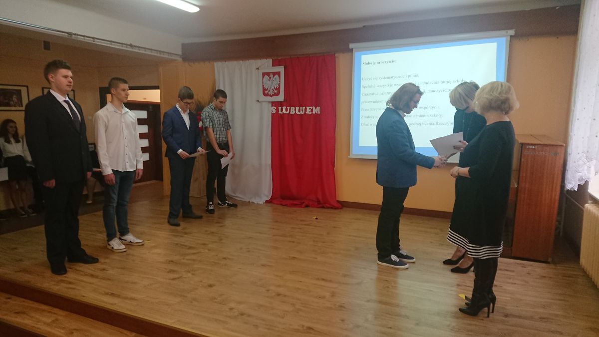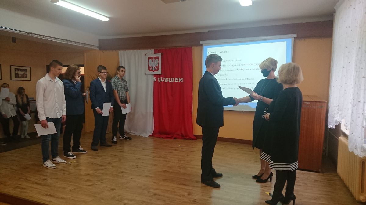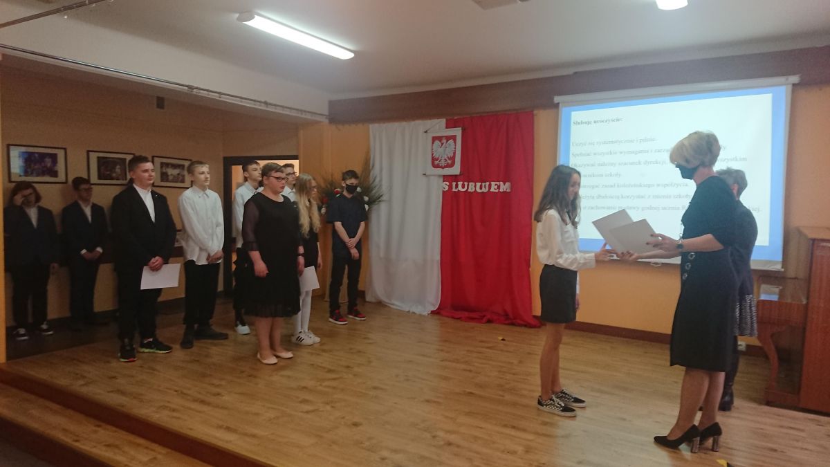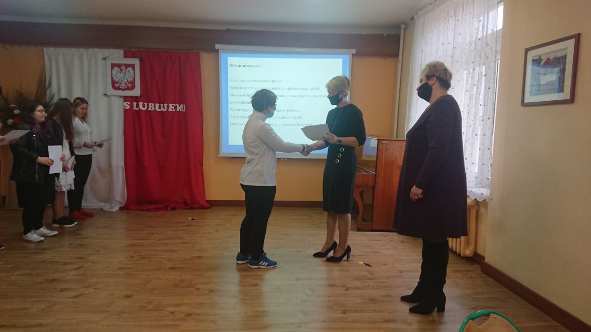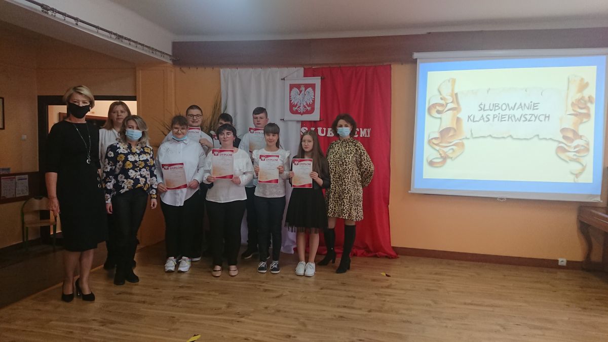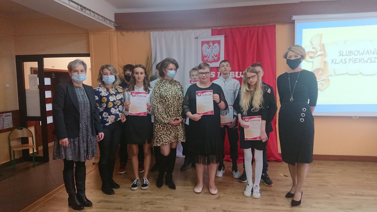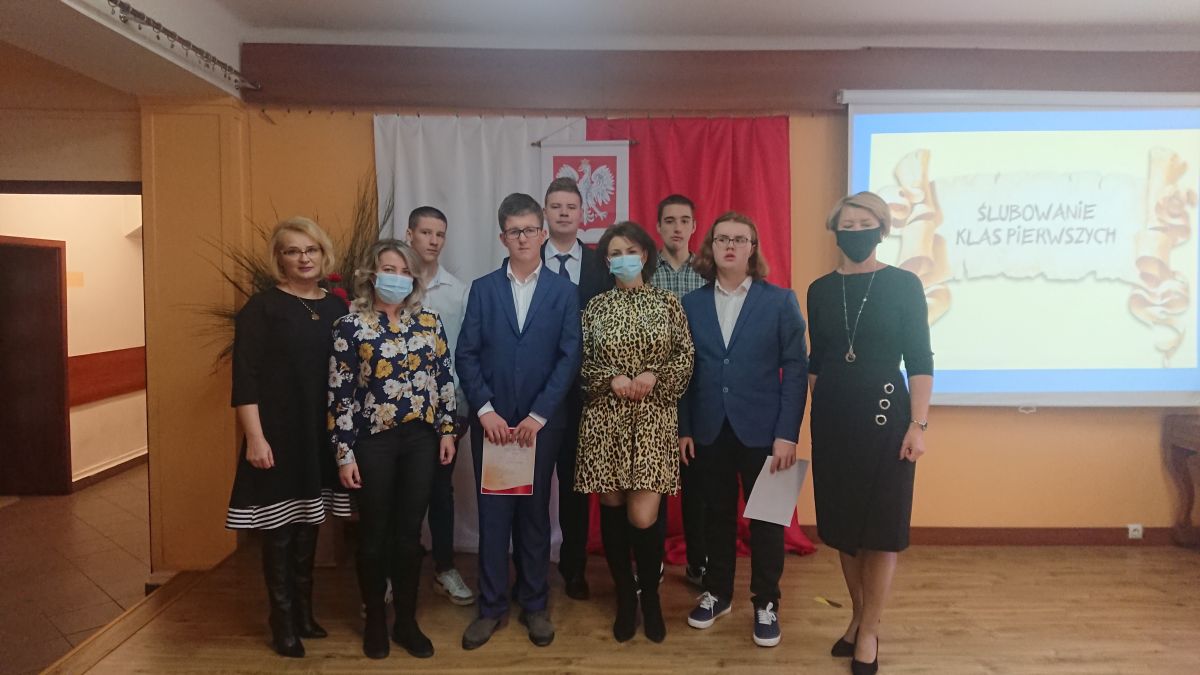 Opublikowano: 2021.11.25 24 XI 2021 roku, uczniowie klas I Technikum nr 9 oraz Branżowej Szkoły nr 7, zostali uroczyście przyjęci w poczet społeczności szkolnej. Po odśpiewaniu hymnu państwowego i ślubowaniu, z rąk Pani Dyrektor wszyscy otrzymali pamiątkowe dyplomy.