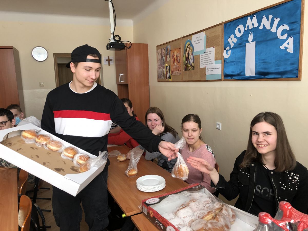 Opublikowano: 2022.03.01 24 lutego Samorząd Uczniowski zorganizował w szkole tłusty czwartek. Dzięki uprzejmości Rady Rodziców zakupiono pączki dla wszystkich uczniów. To był słodki dzień....