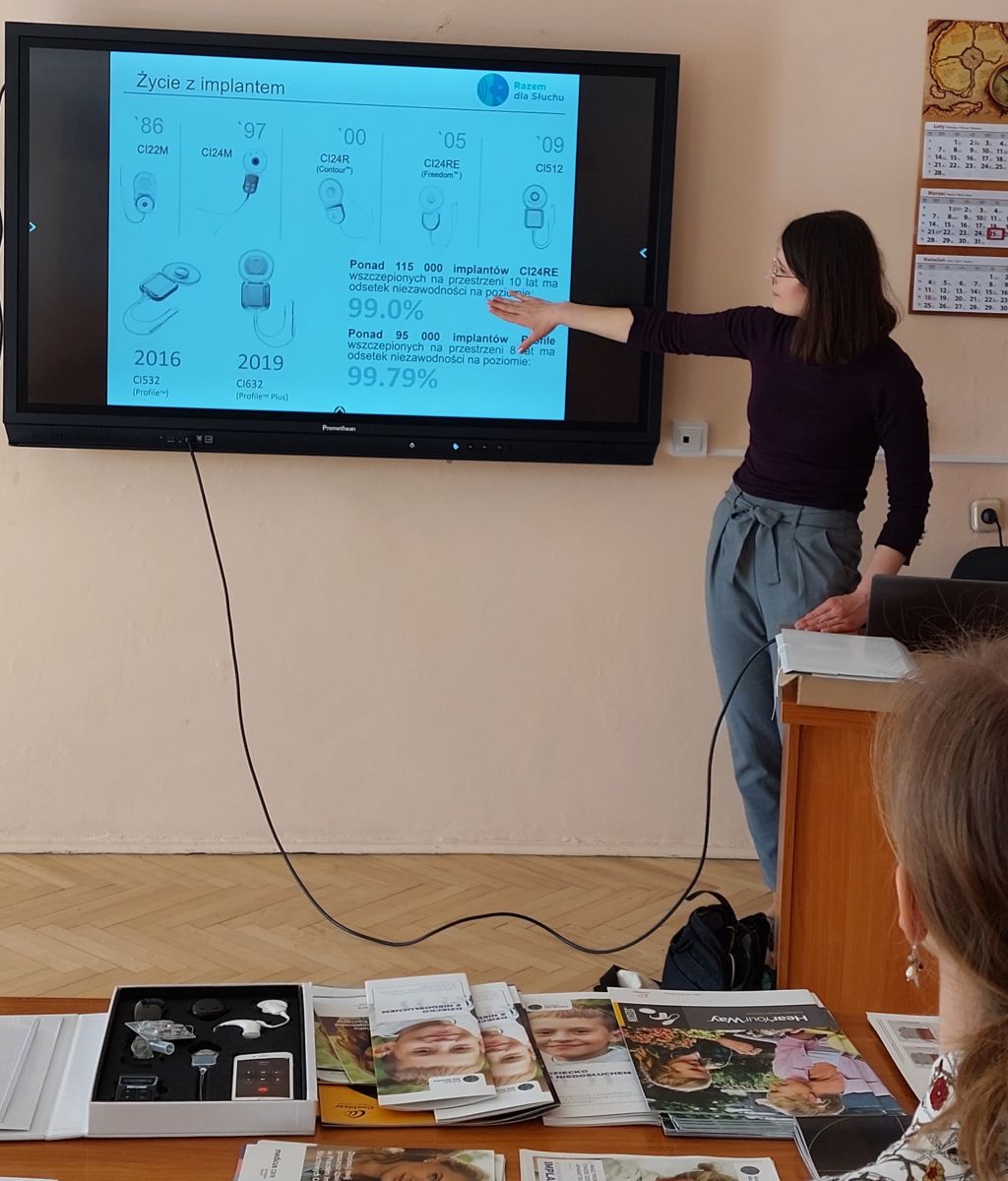 25 marca 2022r. odbyło się szkolenie warsztatowe „Wsparcie dziecka niesłyszącego – dostępność do świata dźwięków, pomimo głębokiego niedosłuchu”. ● Dźwięk a plastyczność mózgu ● Metody wspierania słuchu u dziecka ● Wskazania do rozwiązań chirurgicznych ● Gdzie uzyskać pomoc w drodze do implantu słuchowego? ● Dziecko z implantem słuchowym – co należy wiedzieć ?Prowadzące szkolenie to mgr inż. kliniczny Magdalena Błaszczyk oraz mgr inż. kliniczny Katarzyna Bosiak. Uczestnicy warsztatów (nauczyciele, terapeuci, rodzice)  otrzymali fachową wiedzę na temat różnych rozwiązań dla dzieci z uszkodzonym narządem słuchu, mieli również możliwość wymiany doświadczeń.