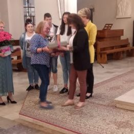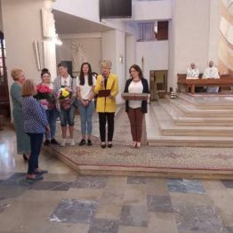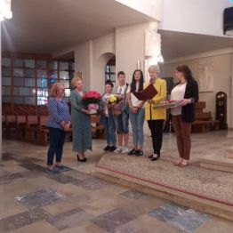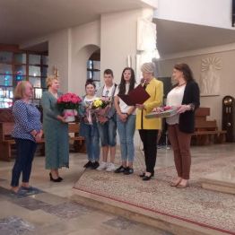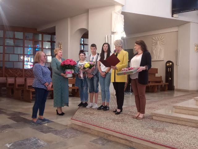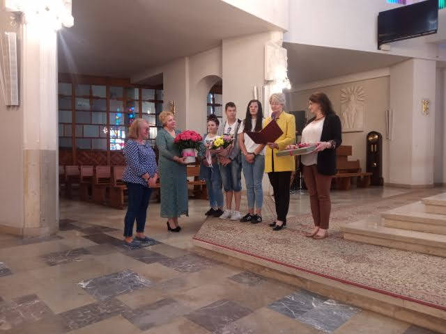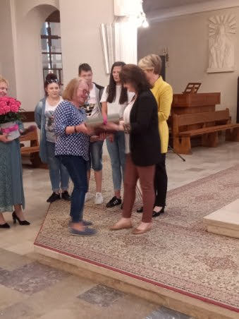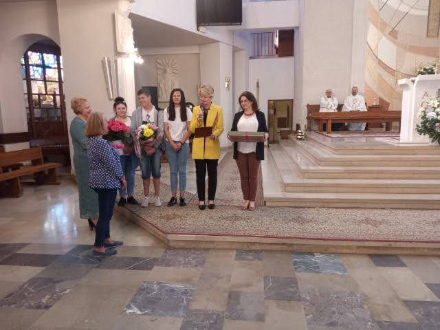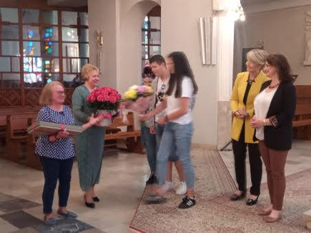 W dniu 14 czerwca br. została odprawiona uroczysta Msza Św. z okazji   zakończenia  roku szkolnego  i katechetycznego 2021/2022  w Sanktuarium Miłosierdzia  Bożego. Koniec roku to okazja do refleksji nad tym, co się w tym czasie wydarzyło, ale także czas na to, aby podziękować Panu Bogu za każdy dzień, za opiekę nad nami, za ludzi, których spotkaliśmy i za to, co dane nam było w tym roku przeżyć.  To okazja by prosić o błogosławieństwo na okres rozpoczynających się wakacji. W tym roku szczególne podziękowania składamy  Pani Małgorzacie Radkiewicz, która po wielu latach pracy w naszej szkole przeszła na zasłużoną emeryturę. Dyrekcja szkoły podziękowała pani  za wieloletnią pracę, serce włożone w edukację i wychowanie wielu pokoleń młodych ludzi. Życzyła delektowania się czasem wolnym na emeryturze i realizowania swoich marzeń i pasji.