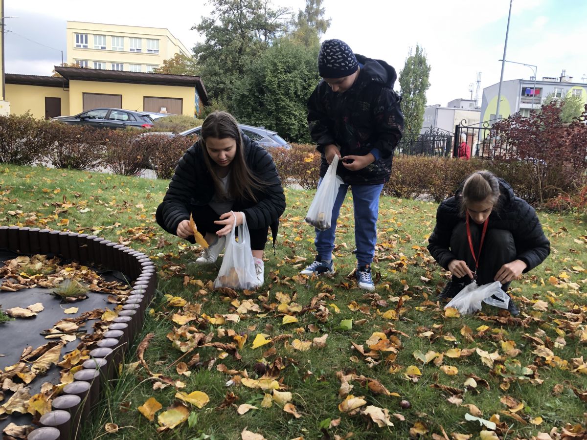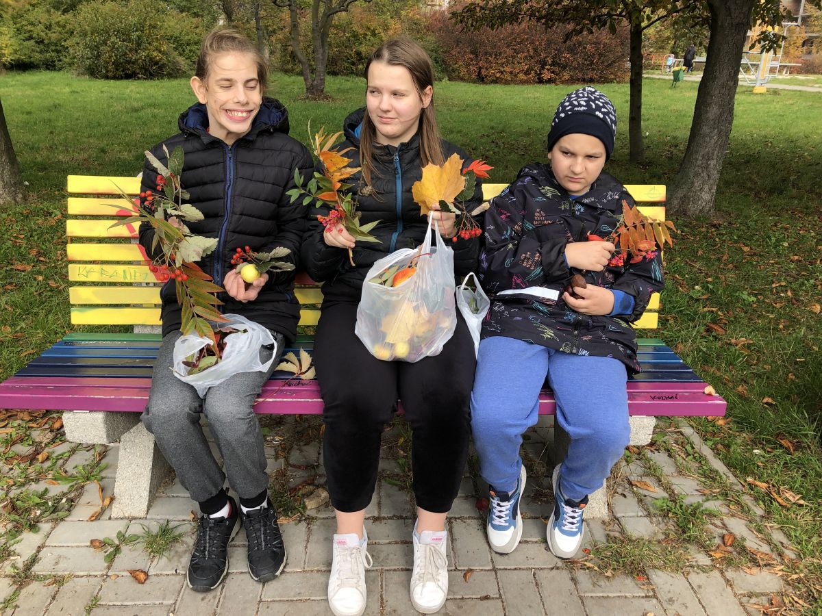 Dziś Ola, Krzyś i Wojtek - uczniowie klasy 8b/5c SP nr 37 na zajęciach z funkcjonowania osobistego i społecznego byli na spacerze, żeby zaobserwować zmiany zachodzące w przyrodzie i zebrać przepiękne dary jesieni. Tuż obok naszej szkoły rośnie duży kasztanowiec, który ma w tym roku wiele "owoców" - pięknych, błyszczących kasztanów i to od niego zaczęliśmy zbiórkę naszych darów. Następnie spacerkiem poszliśmy do Parku Górki Czarnowskie, gdzie znaleźliśmy piękne szyszki, rajskie jabłuszka, owoce jarzębiny i różnokolorowe liście. Zadowoleni i uśmiechnięci wróciliśmy do szkoły. Wkrótce z darów jesieni zrobimy piękne, jesienne dekoracje ... :)