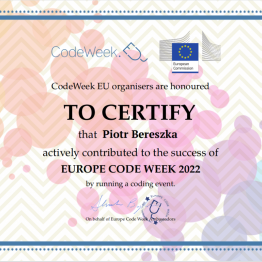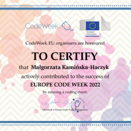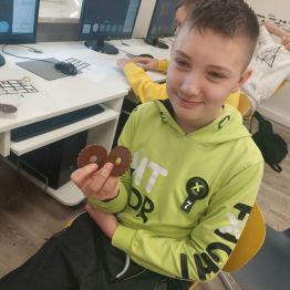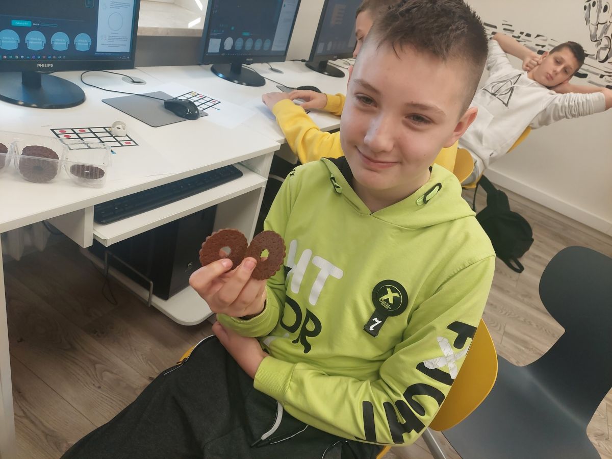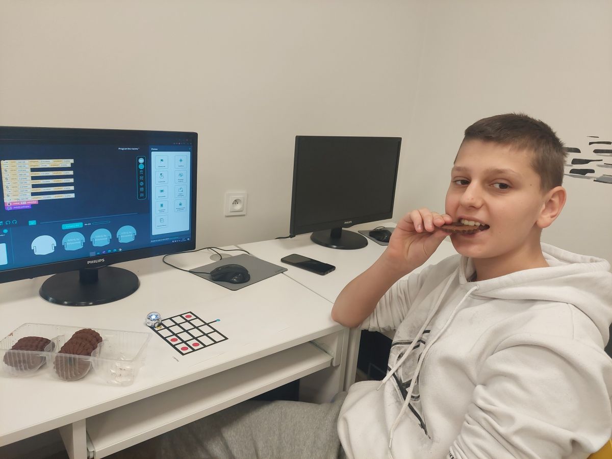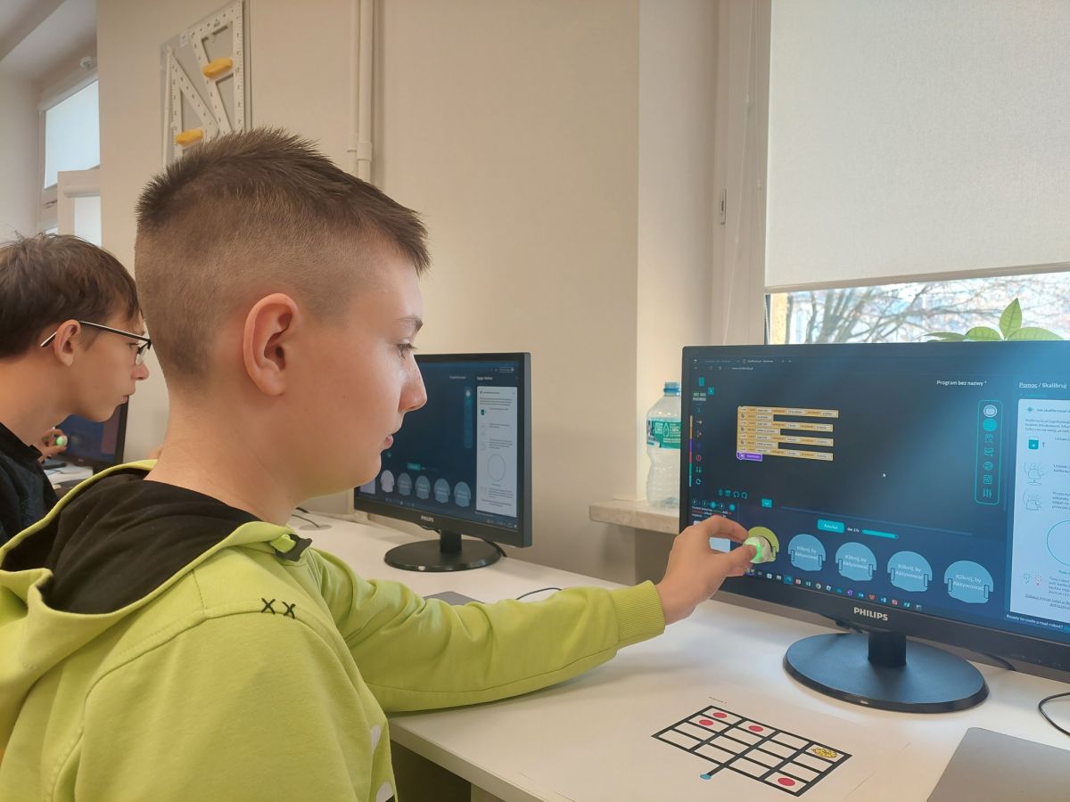W ramach Europejskiego Tygodnia Kodowania (EU Code Week), inicjatywie promującej programowanie i umiejętności cyfrowe, uczniowie naszych szkół wzięli udział w dwóch wydarzeniach - "Ozoblockly - złap i zjedz ciastko" oraz "Koduj z Ozobotem". Pierwsze wyzwanie polegało na tym, że uczestnicy przy pomocy ozobotów oraz aplikacji Ozoblockly musieli zaprogramować robocika tak, aby dotarł na planszy do ciasteczka. Ozobot omijał przeszkody i zaliczał kolejne punkty na trasie. Kto ukończył zadanie, otrzymał słodką nagrodę. W wydarzeniu brali udział uczniowie szkoły podstawowej. Zwycięzcą wyzwania został Gabryś Łukawski z klasy VII B.