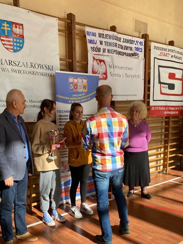 20.10.2022 r. uczniowie naszego Ośrodka uczestniczyli w zawodach w tenisie stołowym w Busku Zdroju. Organizatorem tego wydarzenia sportowego było Zrzeszenie Sportu i Rehabilitacji "START" w Kielcach oraz Polski Związek Sportu Niepełnosprawnych START w Warszawie. Zawody przeprowadzone zostały systemem pucharowym. W wyniku rywalizacji w kategorii Open kobiet - I miejsce zajęła Paula Mróz a III miejsce wywalczyła Katarzyna Pedrycz. W grupie chłopców I miejsce zajął Paweł Heliosz.