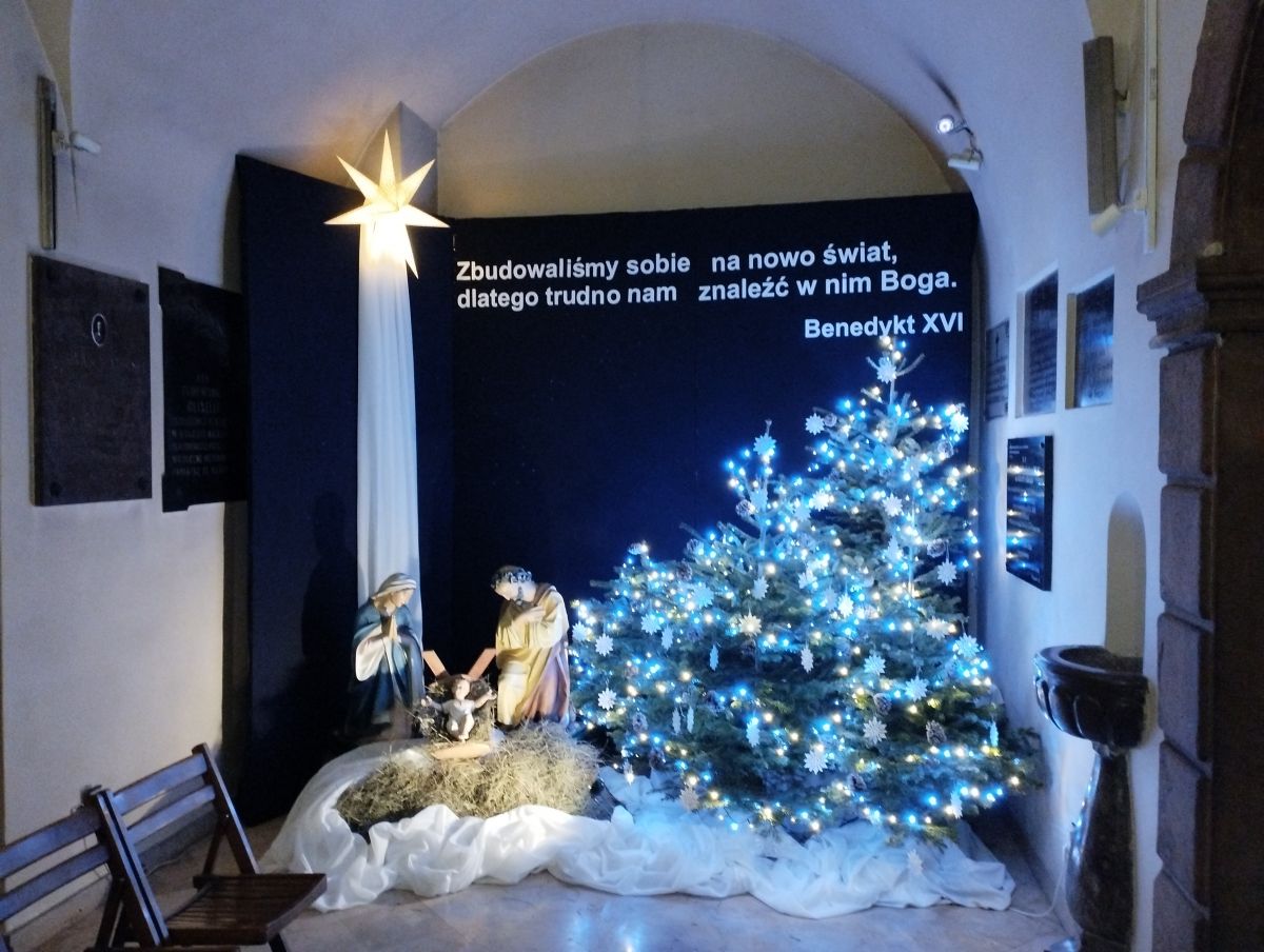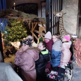 Pierwsza szopka, którą mieliśmy okazję zobaczyć znajdowała się w Bazylice Katedralnej. Dużym zainteresowaniem cieszyła się stajenka z rzadko spotykanymi zwierzętami jak słoń czy żyrafa. Dzieci pokłoniły się małemu Jezusowi i zaśpiewały kolędę: Lulajże Jezuniu.