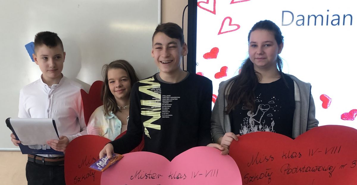 14 lutego to szczególny dzień. Przypomina nam o obdarowywaniu miłością wszystkich ludzi, którzy nas otaczają. Nie chodzi w nim o prezenty lub wyznawanie miłości, choć nazywa się go potocznie: "Dniem Zakochanych". To święto pokazuje nam, jak ważna w życiu człowieka jest obecność drugiej osoby, która wesprze nas i pomoże nam w każdej sytuacji. Pamiętajmy jednak, aby obdarzać szacunkiem oraz okazywać miłość bliskim nie tylko w tym jednym dniu w roku. W związku z obchodami walentynek uczniowie wysyłali kartki do swoich przyjaciół, wybierali miss i mistera w szkole podstawowej, branżowej szkole I stopnia oraz technikum. Walenty w naszej szkole nie zapomniał o nikim - każdy dostał słodkiego lizaka w kształcie serduszka :)