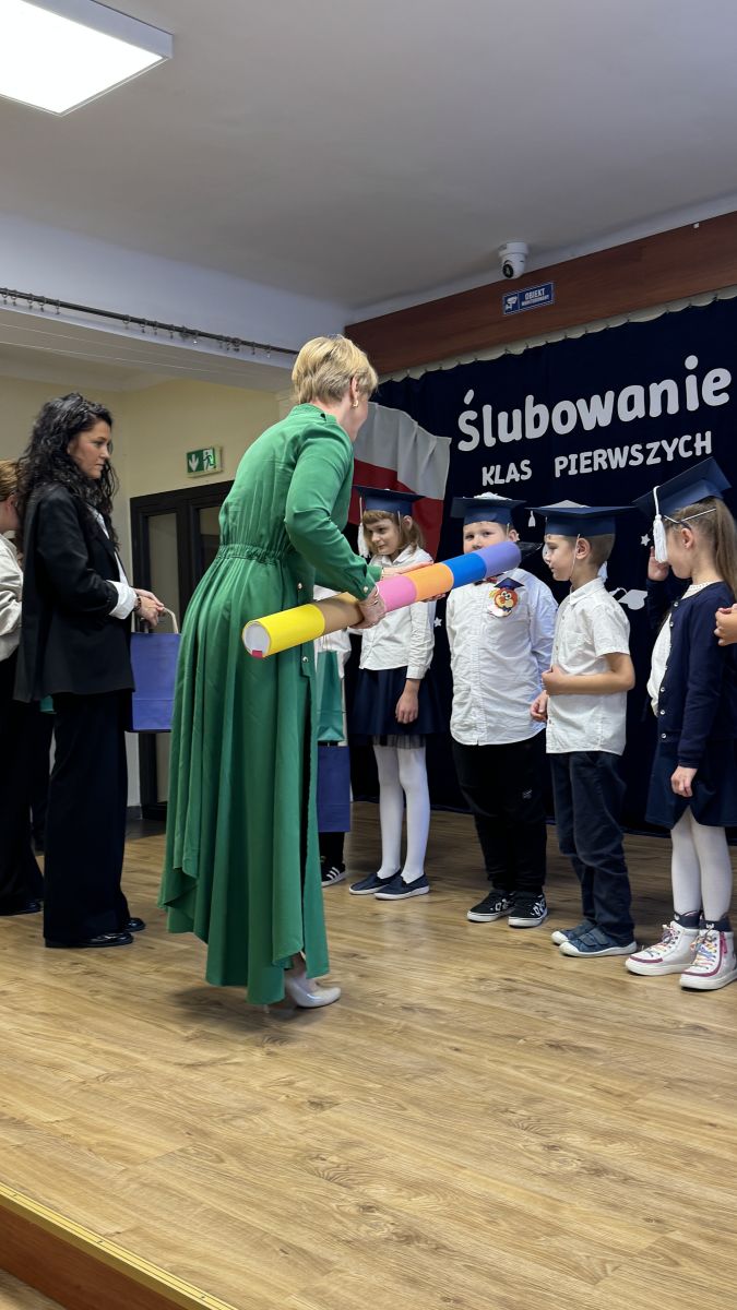 Uroczystość miała podniosły, a jednocześnie radosny charakter. Najważniejszym punktem wydarzenia było złożenie ślubowania w obecności Pani Dyrektor, nauczycieli i rodziców.