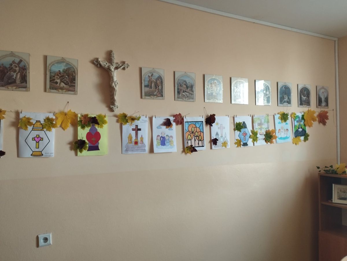 Uczniowie naszej szkoły wraz z katechetami i wychowawcami również uczcili pamięć tych, których nie ma już pośród nas, odwiedzając m.in. groby poległych żołnierzy na jednym z kieleckich cmentarzy. Nowego oblicza nabrała również sala katechetyczna, udekorowana pracami plastycznymi naszych uczniów.