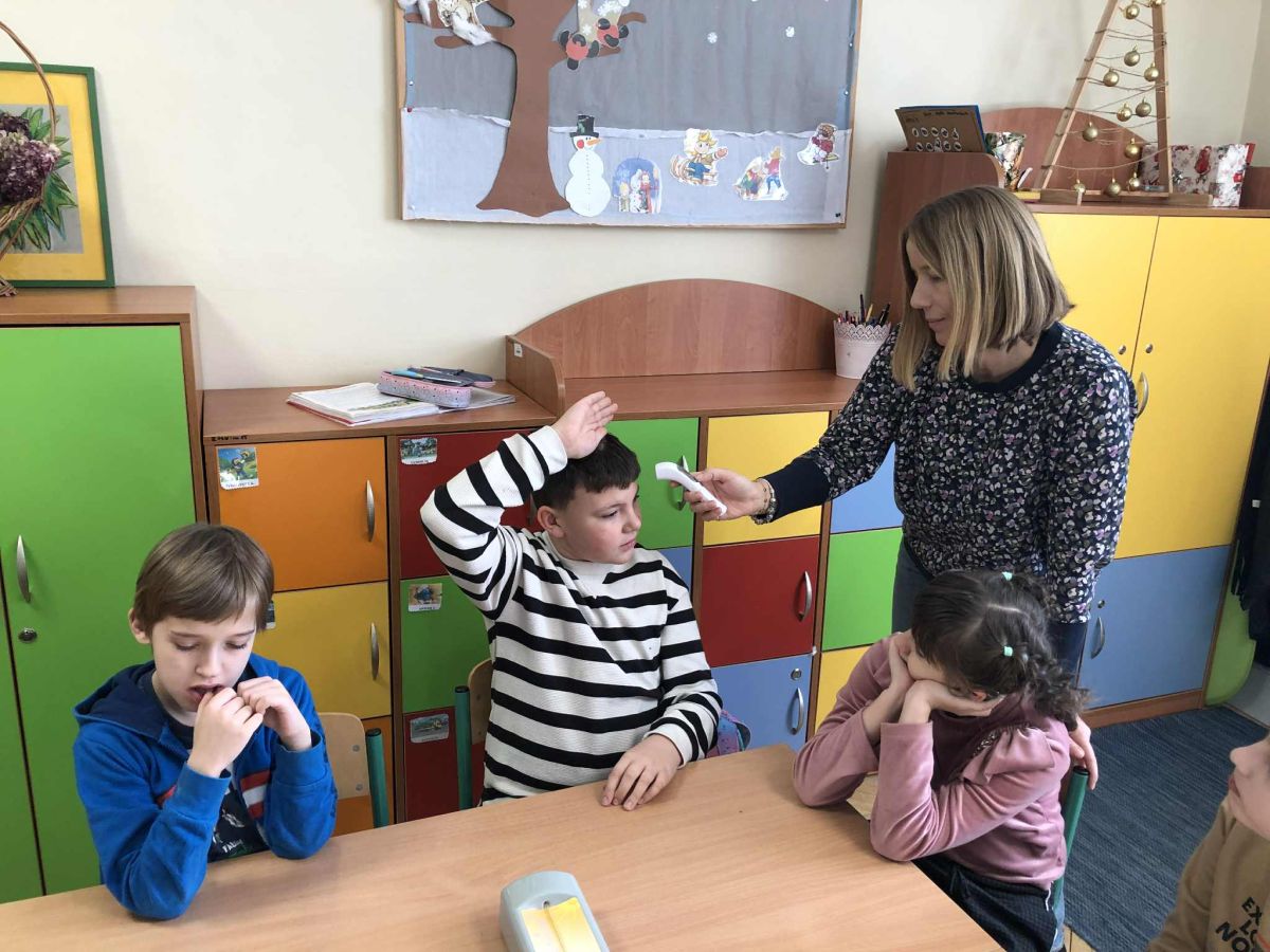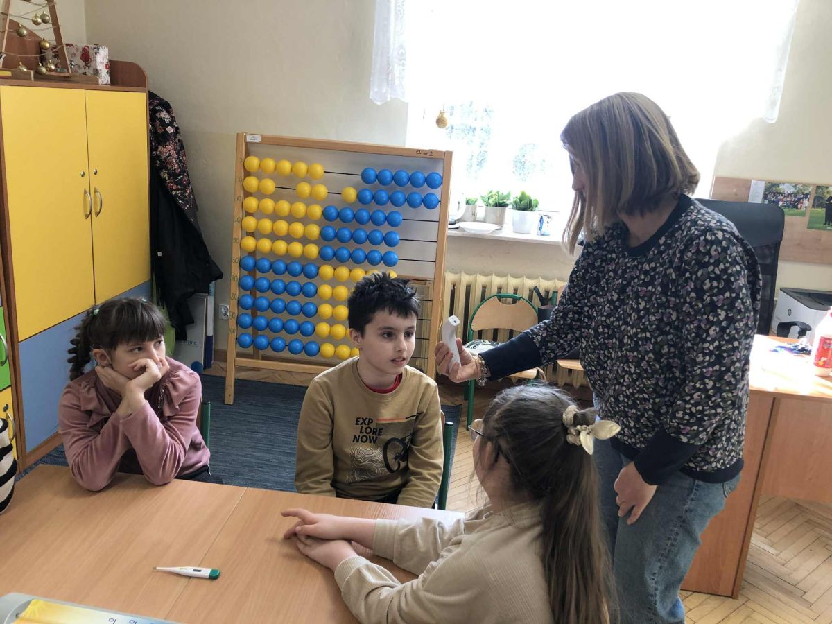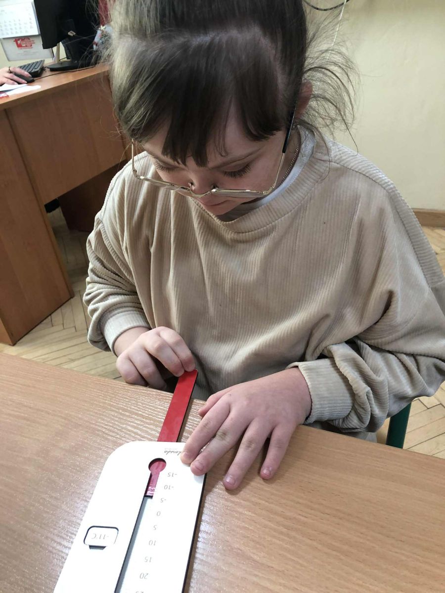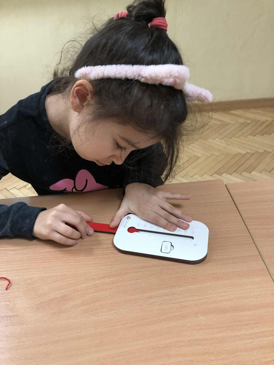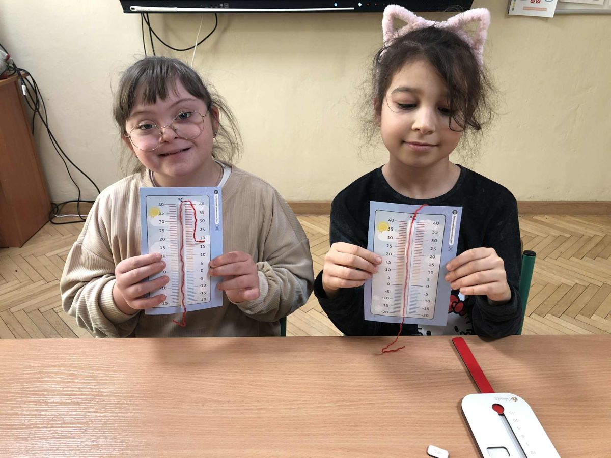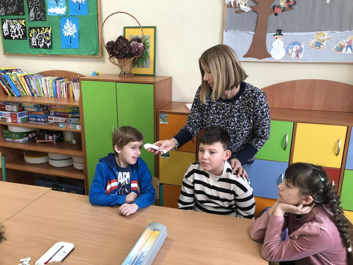 W ramach zajęć innowacji pedagogicznej „Z matematyką na co dzień” uczniowie klasy 1b i 3a zapoznali się z różnymi rodzajami termometrów oraz ich zastosowaniem. W sposób praktyczny ćwiczyli odczytywanie wskazań termometrów oraz porównywali ich wyniki. Przeprowadzali szereg doświadczeń dzięki czemu mogli przekonać się, czy da się sprawdzić temperaturę bez termometru. Zwieńczeniem zajęć było samodzielne wykonanie termometrów.