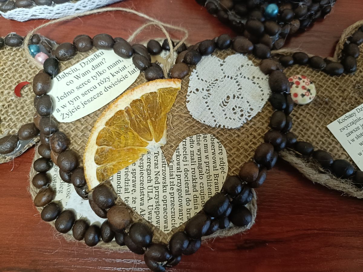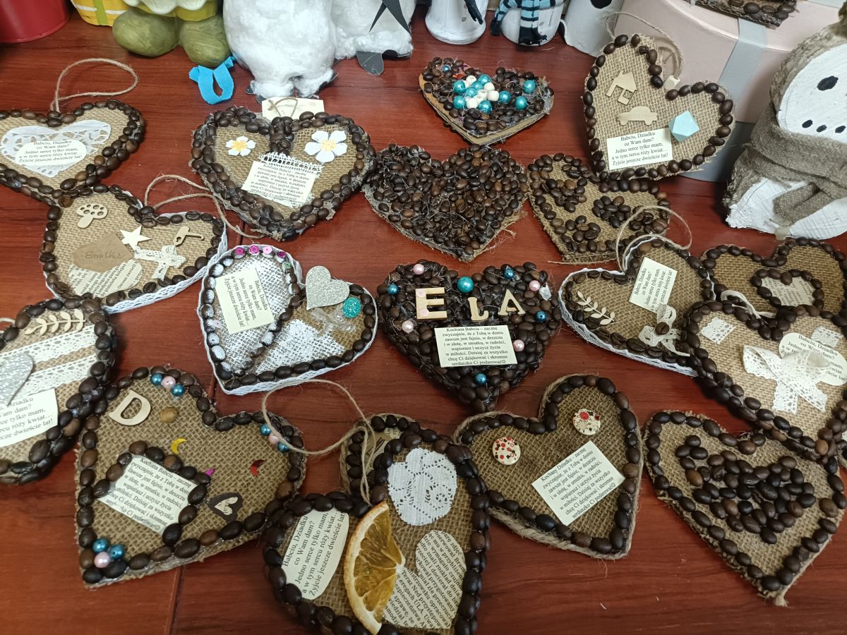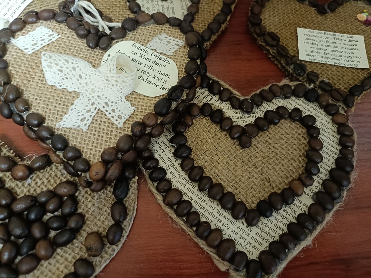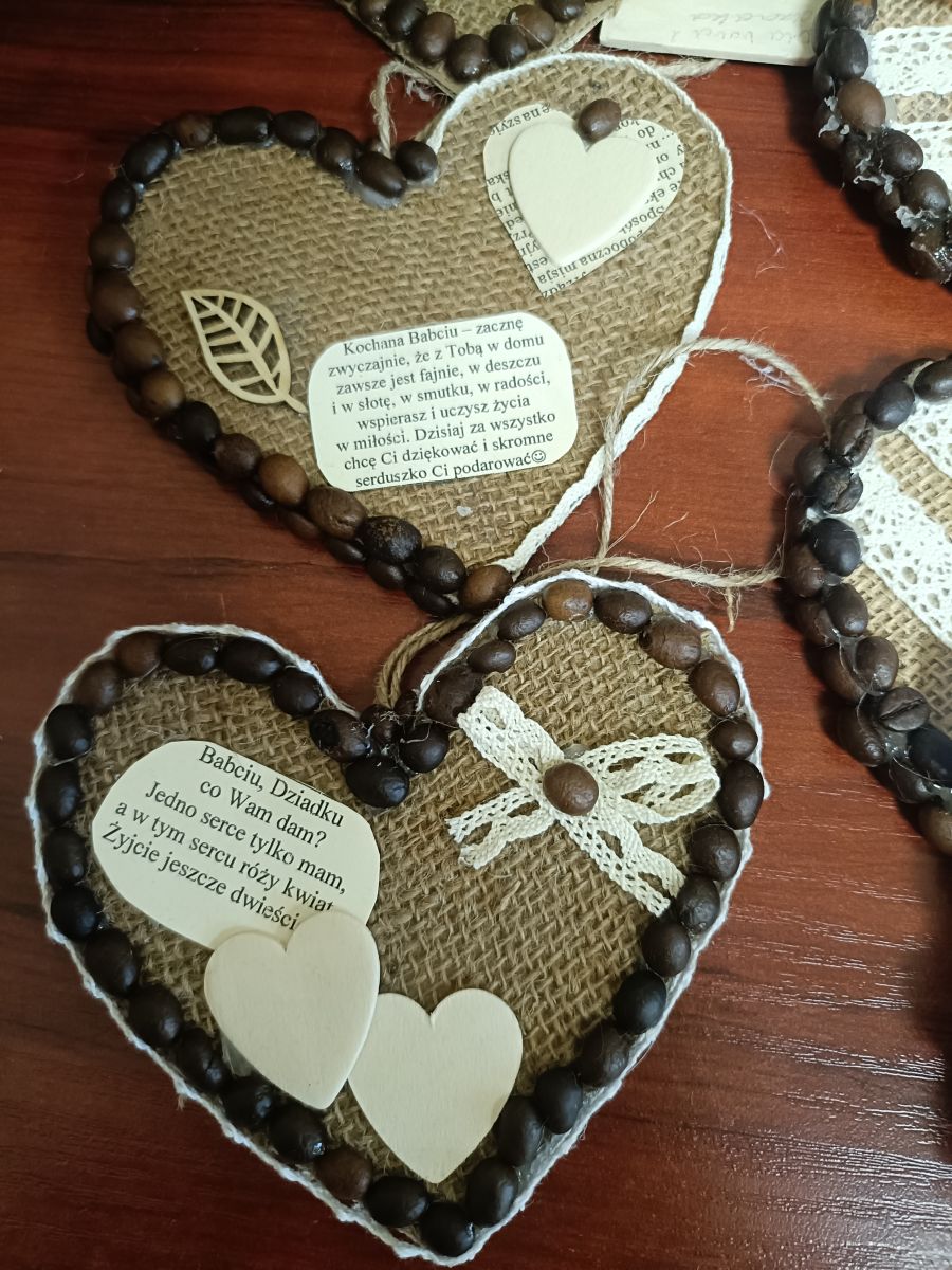 Babcia i Dziadek to rodzice naszych rodziców. Dbają o nas, rozpieszczają, mają dużo cierpliwości do naszych psot, pozwalają na smakołyki....🤫 i kochają bez granic❤️. My choć odrobinę chcielibyśmy się Im odwdzięczyć i postanowiliśmy własnoręcznie przygotować aromatyczne, kawowe serca z wykorzystaniem juty, kolorowych guzików, plastrów pomarańczy i koronkowych tasiemek. Sami zobaczcie, co nam udało się stworzyć....💪Dziadkowie byli dumni i wzruszeni.... 🥰Kochani Wy również pamiętajcie o swoich kochanych Seniorach i nie tylko od święta...😚